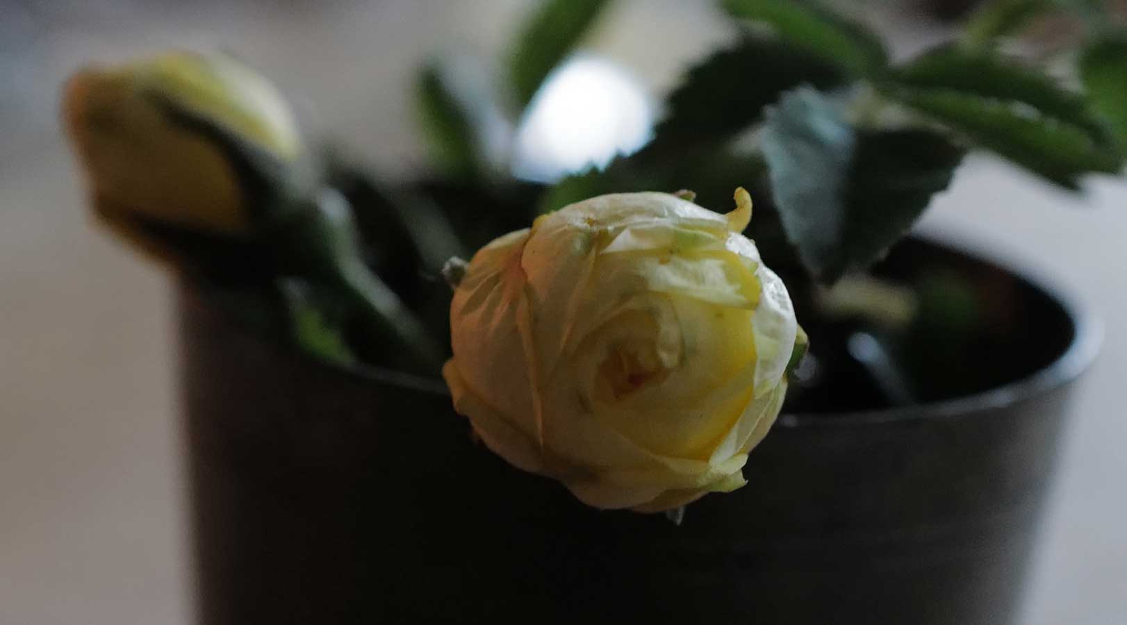 während draussen die Rosen schon blühen und träumen im Zimmer von ihrem Blühen draussen,