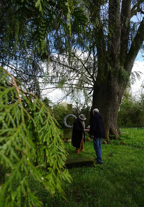Am Friedhof braucht das Grab --wieder der Toten des Dorfs aus dem letzten Krieg --Blumen und Wasser