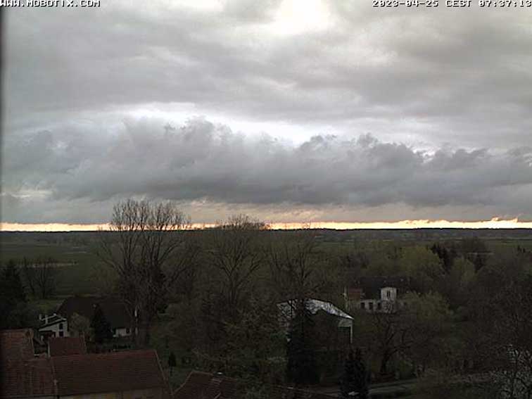Wie das mit einander kämpft. Das Grau und das Licht am Horizont, zwei Bilder vom Turm in gegenüberliegenden Richtungen.