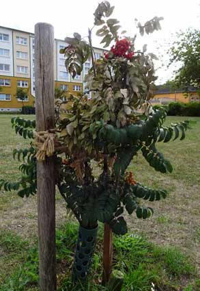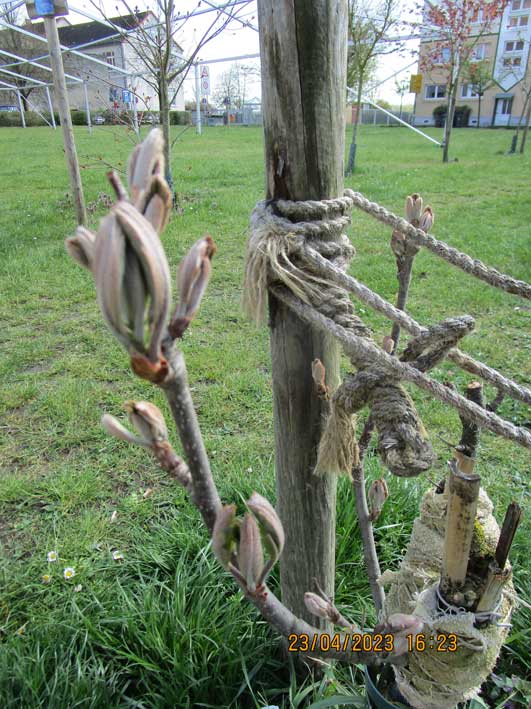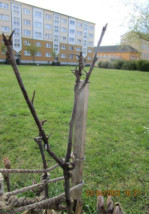 Unsere Mühen zu verbinden mit Lehmwickel tund täglichen Wässerns im Sommer mit Kannen getragen, haben den oberen Teil nicht über den Winter zum Austrieb jetzt retten können. Gescheitert?
