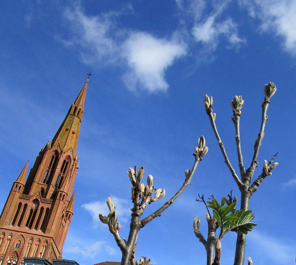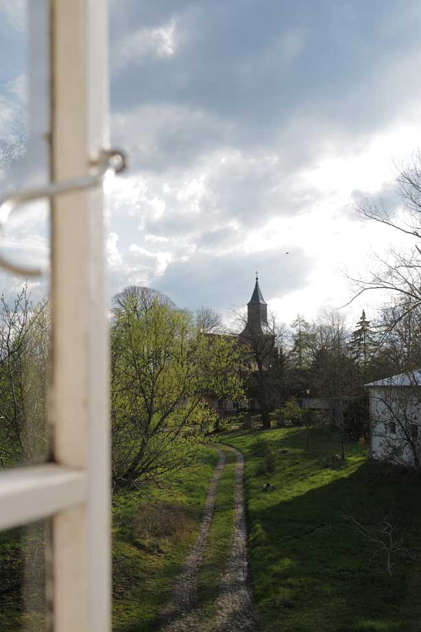 Denn die Schleen sind jetzt reif zur Blüte und die Birne auch, wie der Turm aus dem Fenster zusehen hier.