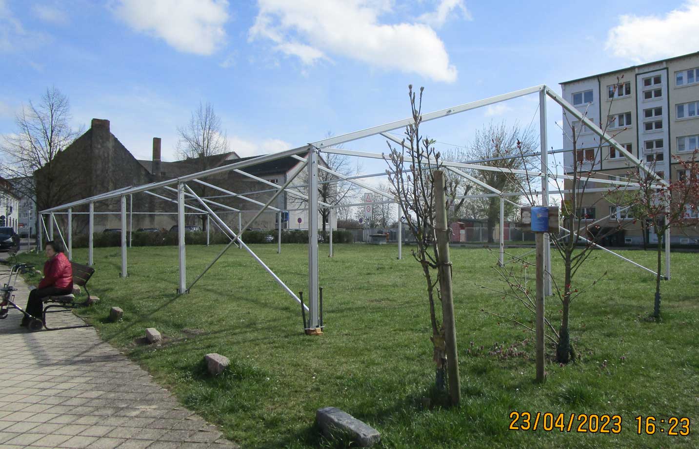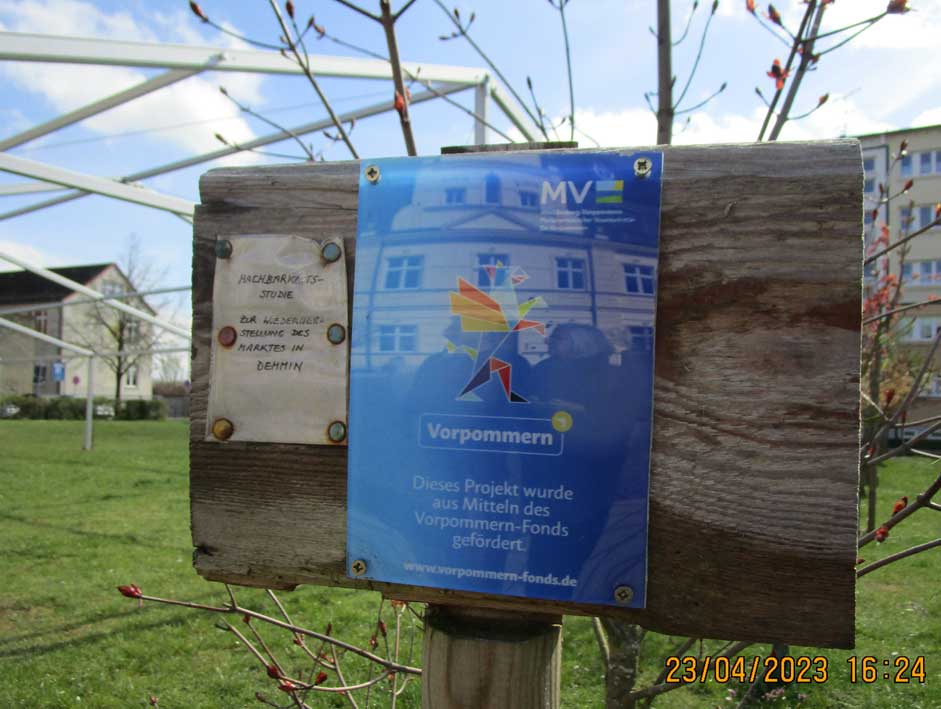 Das Schild der Zuwendungen aus Schwerin, dem Land, nicht achtend die Gestaltung des Marktes, für einen andere Zukunft, noch da.
