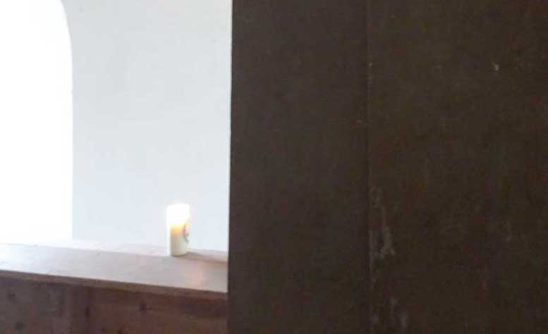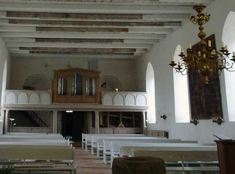 Die Räume unter der Orgelempore gehören wieder zugemacht, mit Glas. So wie der Altar ln alter Farbe befreit in Blau.
