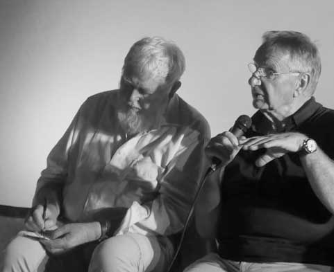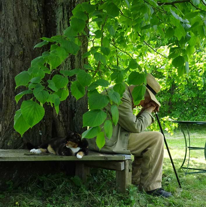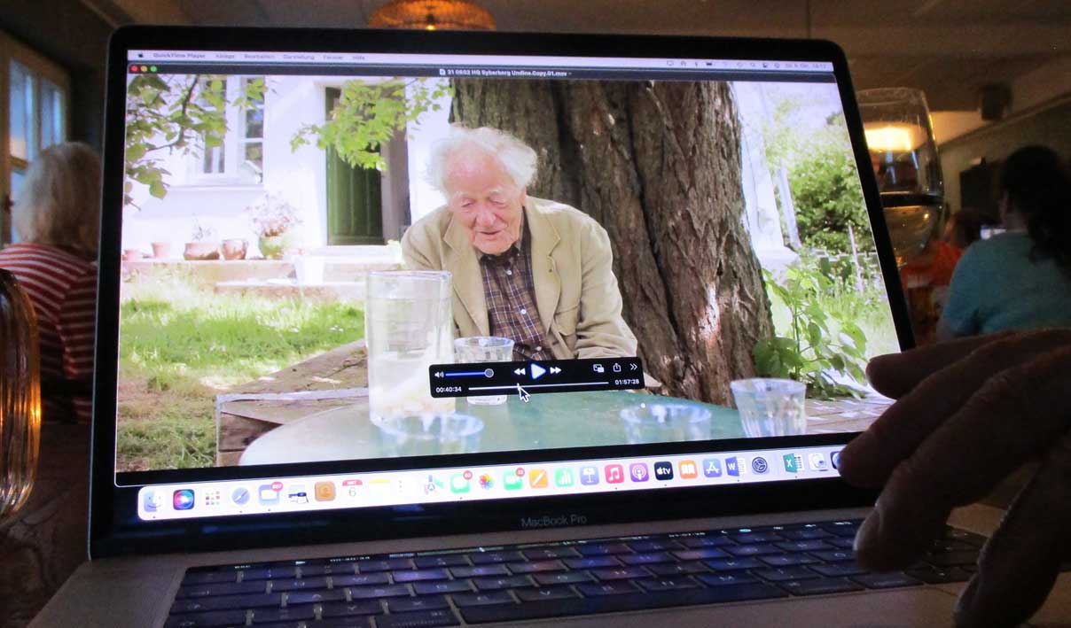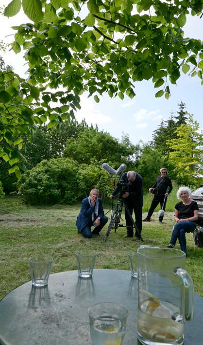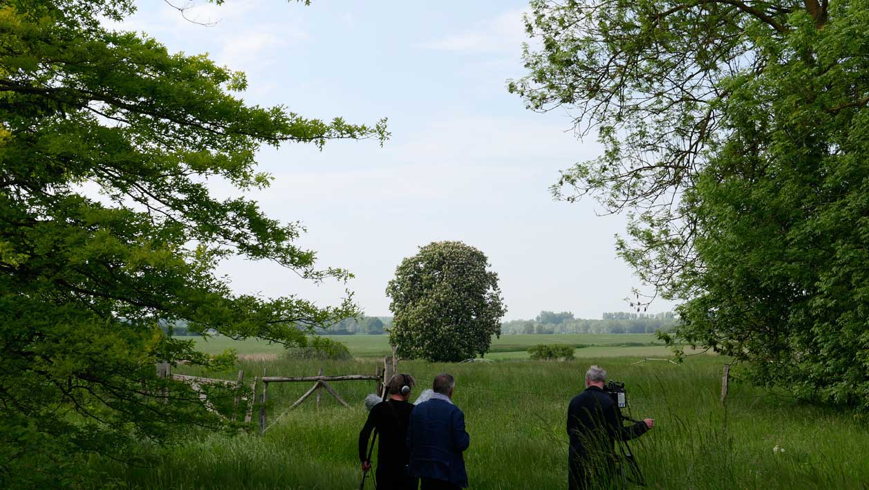 So entstanden die Aufnahmen für den Volker Koepp-Film Gehen und Bleiben am 3. Juli 2021 in Nossendorf zur Figur des Uwe Johnson. Aber auch zum Thema überhaupt. Zuerst unter der Linde. Mit Erinnerungen an unsere Rostocker Uwe-Johnson - Zeit vor dessen Weg in den Westen 1953. Also das Gehen.