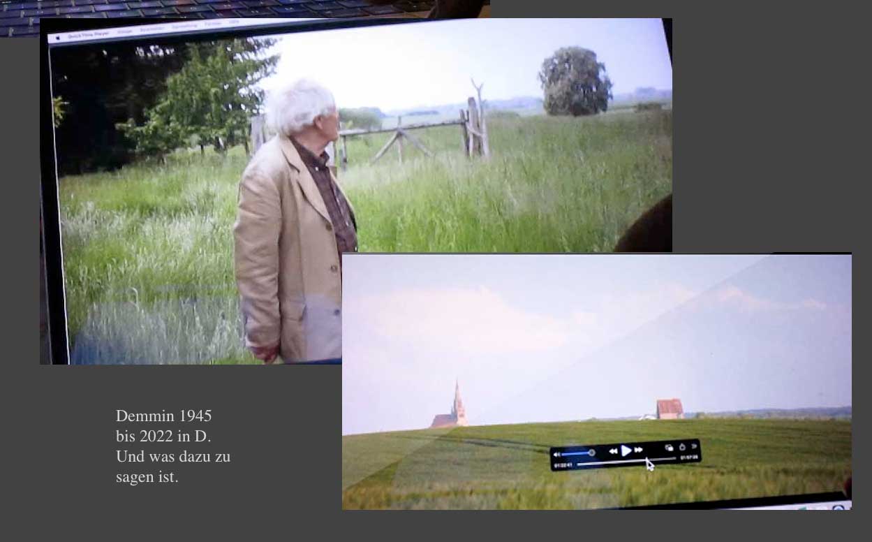 Wenn nun diese Eingangsszene vom Mai 1945 hier zu einem Film über Demmin gesetzt ist 75 Jahre danach, liegt eine Tragöde über der Stadt und dem Land, schwer darzustellen und vielleicht im ganzen Ausmass als Lähmung von innen zu verstehen. Wir haben es dann versucht. Vielleicht umsonst für dieses Land und diese Generation noch.
