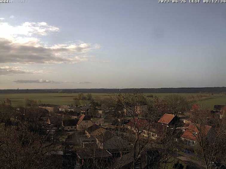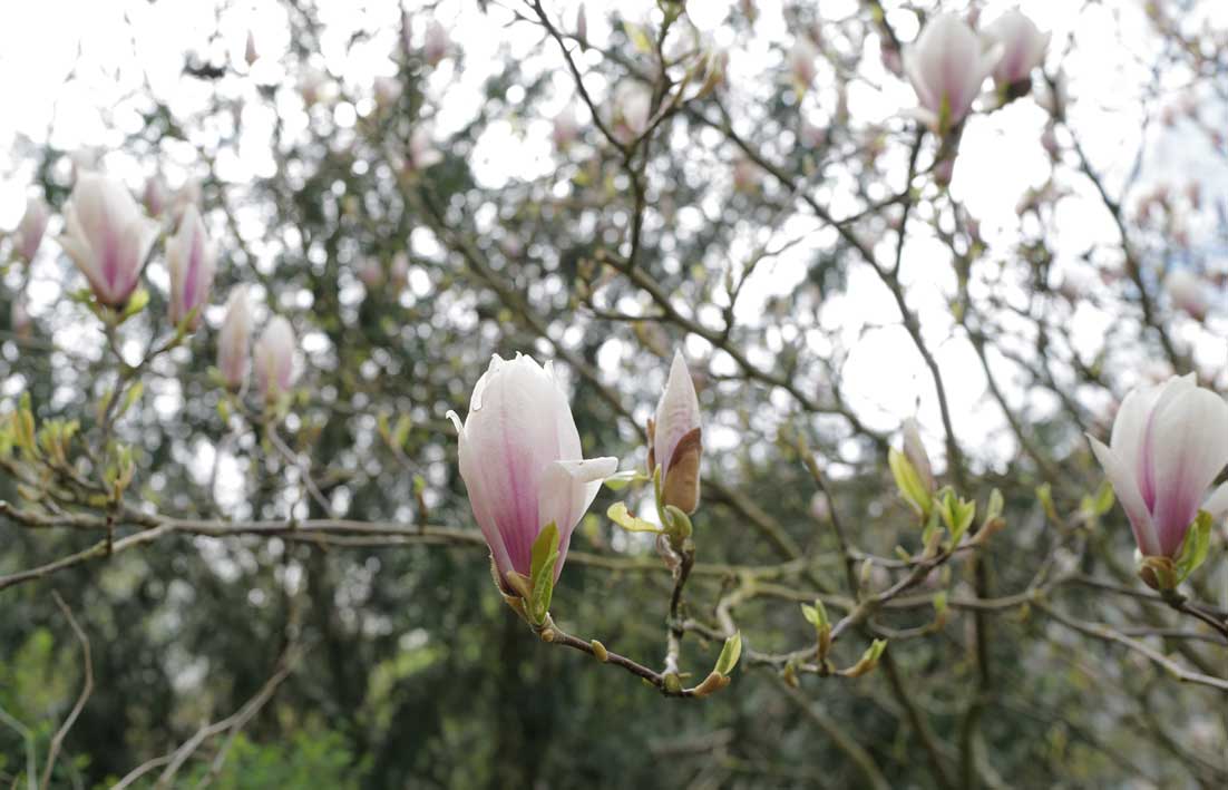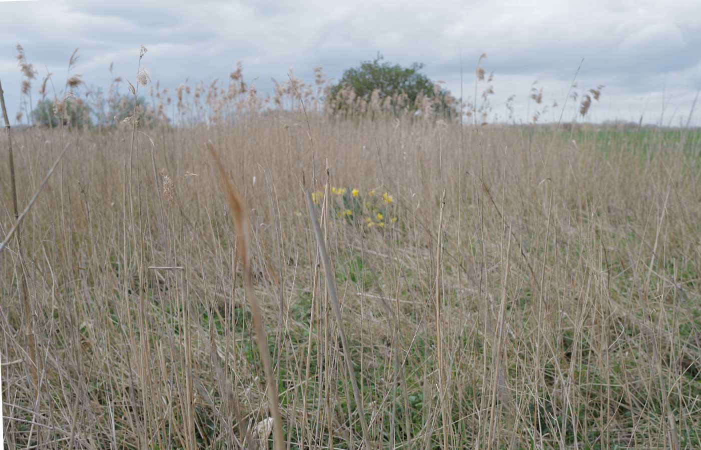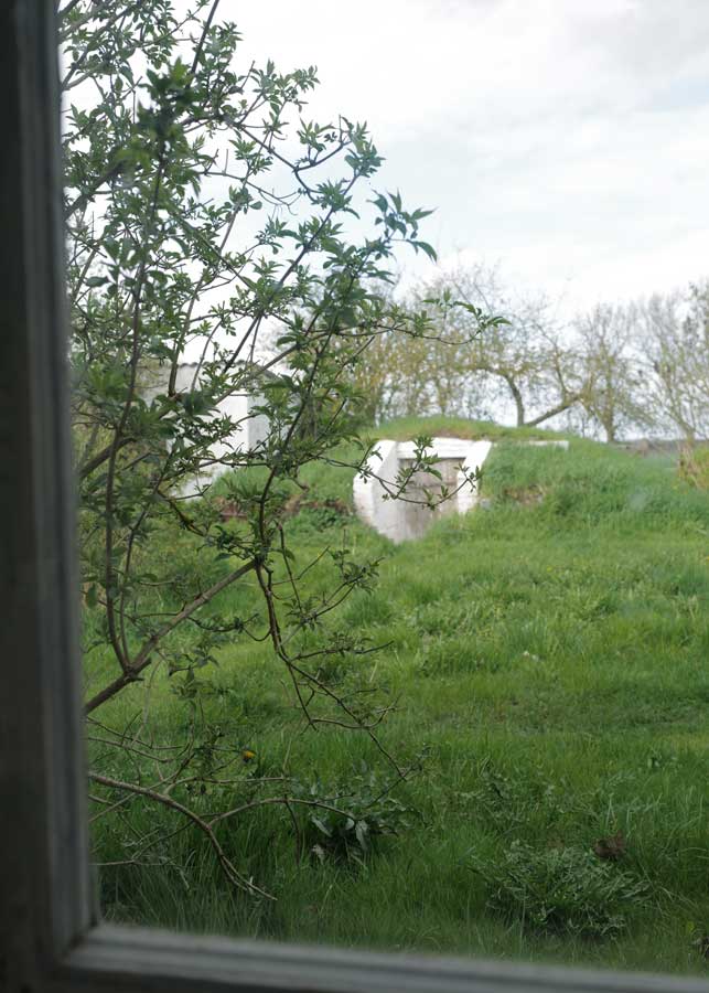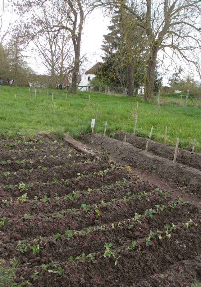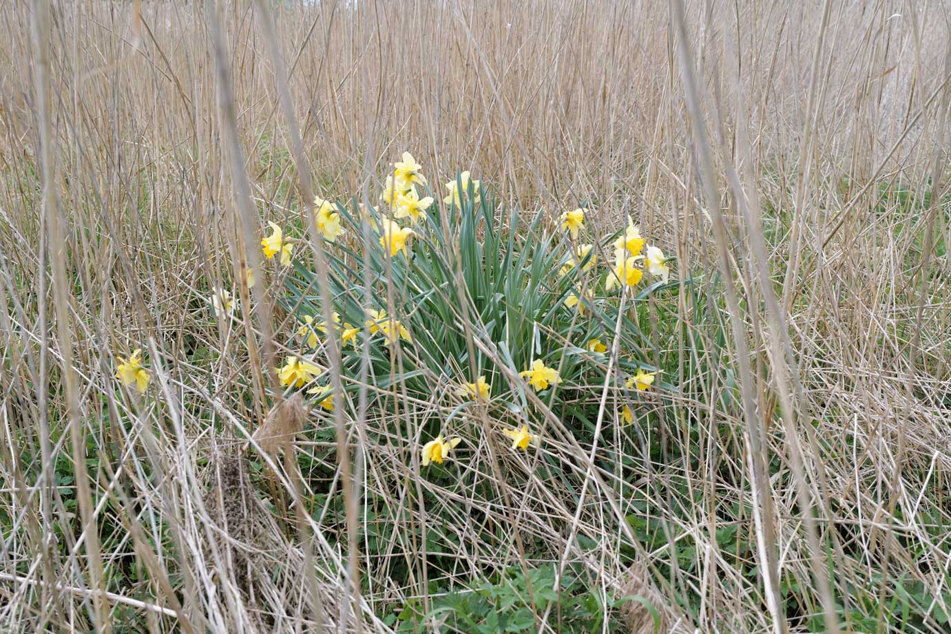 Noch sehen wir der trangendes Äste dunkles Gerüst im aufgehenden Knospen Netz an der Brücke über den Graben ins Land.
