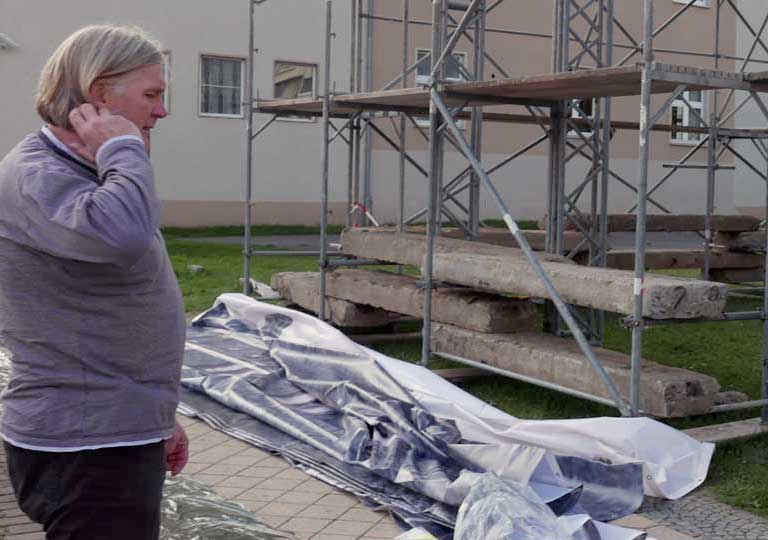 Wenn der Wind in die Fassaden fuhr durch das Gerüst wurde uns bang viele Hände wurden nötig