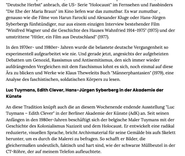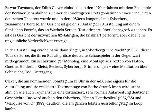 Am Ende immer frecher DIE NACHT 6 Stunden ent- eignet Courtesy Luc Tuymans Edith Clever auch ((MONOPOL) ungenau gearbeitet, jemand so angesagt? und der Unfähigkeit zu trauern zugeordnet, unter einem gemeinen Porträt der Darstellerin als "Warhol test" nicht ihr gemäss. Wir wussten warum sonst niemand Fotos machten sollte während dieser Monologe. Sonder Gleichen.