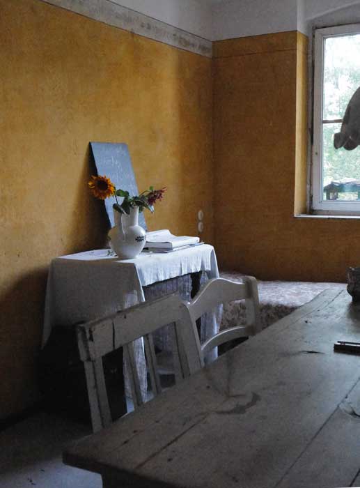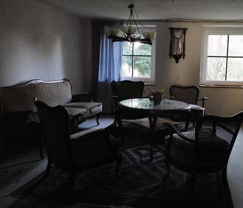 und die Gute Stube vom Gutsverwalter Sittner des Stadtgutes von Demmin, alles weg was Haus, das Land, hier das Erbe der Tochter Käding, dann Frau es Krankenhaus-Chefs und die uns das Kreuz malte auf die Stirn in der Wiege. Ach sagen wir uns doch Du auf der Treppe oben, an der Tür, letztes Bild 97jährig, bevor sie starb.