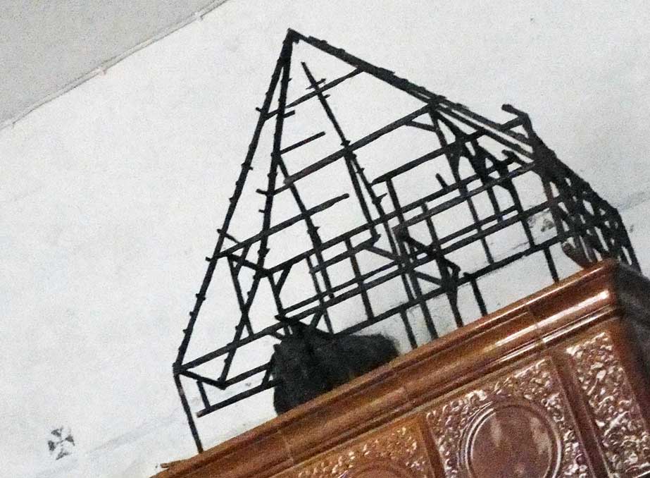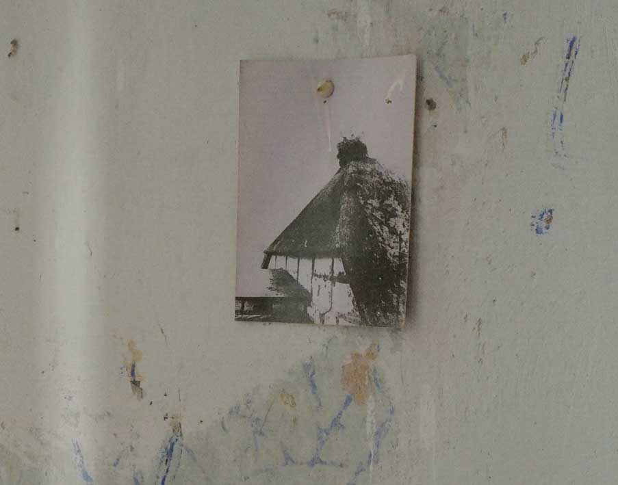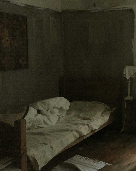 auf dem Ofen wieder das Modell der verbrannten Scheune für die NACHT, nie benutzt. Im Theater, das nicht statttfand in Deutschland dafür.Warum überhaupt - sagen wir hier nicht.