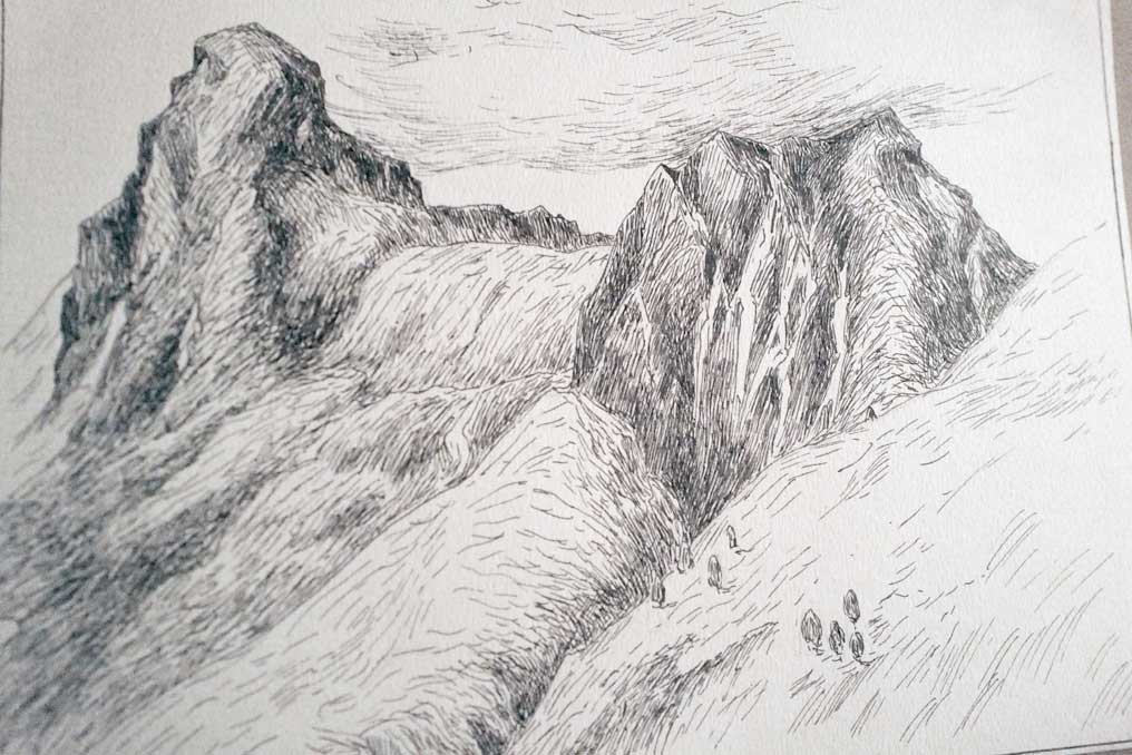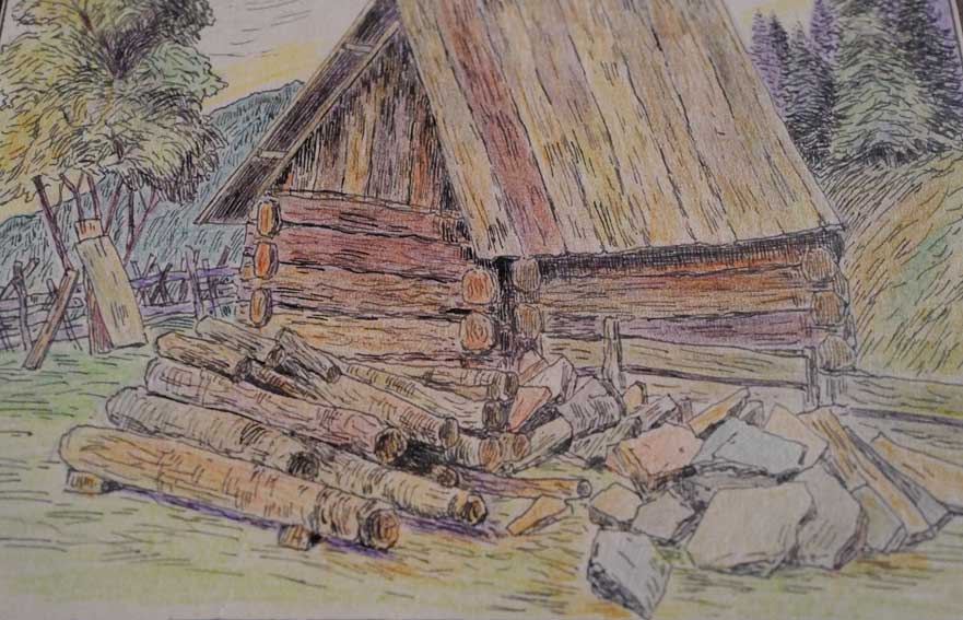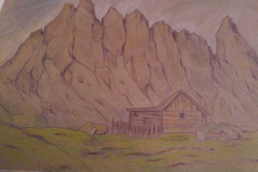 Es sind Zeichnungen aus dem Album des Erbauers der Geburtsszene Weihnachten dies Jahr hier vor 70 der 80 Jahren entstanden mit der Frage warum er wohl eine Krippe in einer Berghütte baute statt als Stall. Wie sonst diese Urszene der Christen.