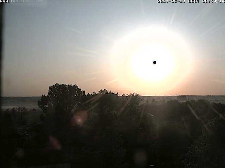 Der frühe Morgen der ersten Bilder des Tages zeigen Nebel über dem Fluss. Und den schwarzen Kern der Sonne, die auch wärmen kann.