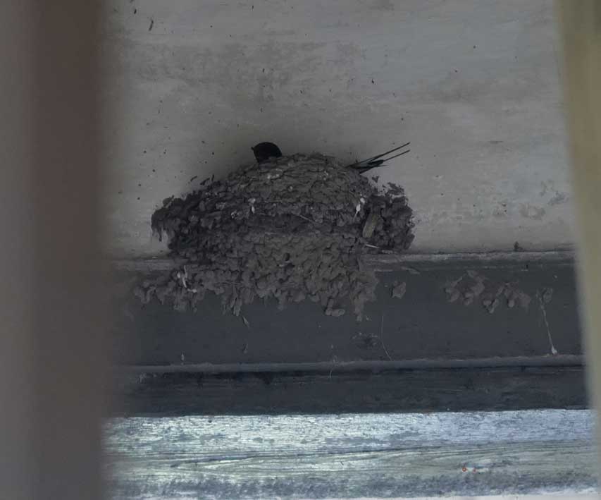 Der Turm im Sommer schon verdeckt aber die einsame Schwalbe rettet das Haus