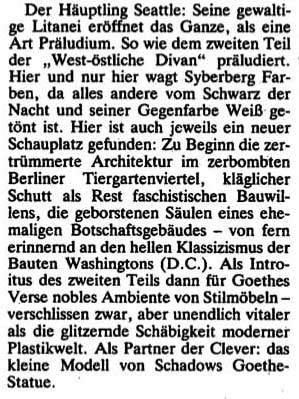 Zwei Präludien haben die zwei Teile der Nacht, die man in der Akademie, wo die Nacht zur Zeit auch läuft, nicht sieht. Dies ist das Eine am Anfang. Präludien zu dem Gefüges das Ganzen und nicht nur der Landnahme der USA, sondern darin auch uns, den Europäeren den Spiegel vorhaltend.