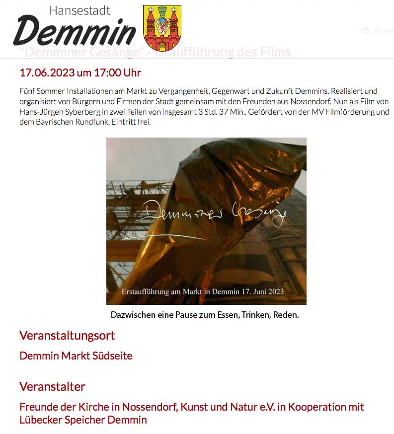 Endlich entschieden Demmin als Uraufführungsort. Und so sah das alles gut aus.
