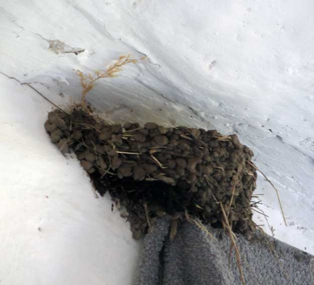 des Nests der Schwalben dass es wächst nach dem Regen