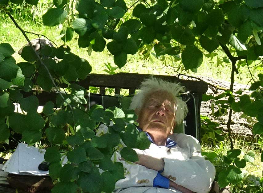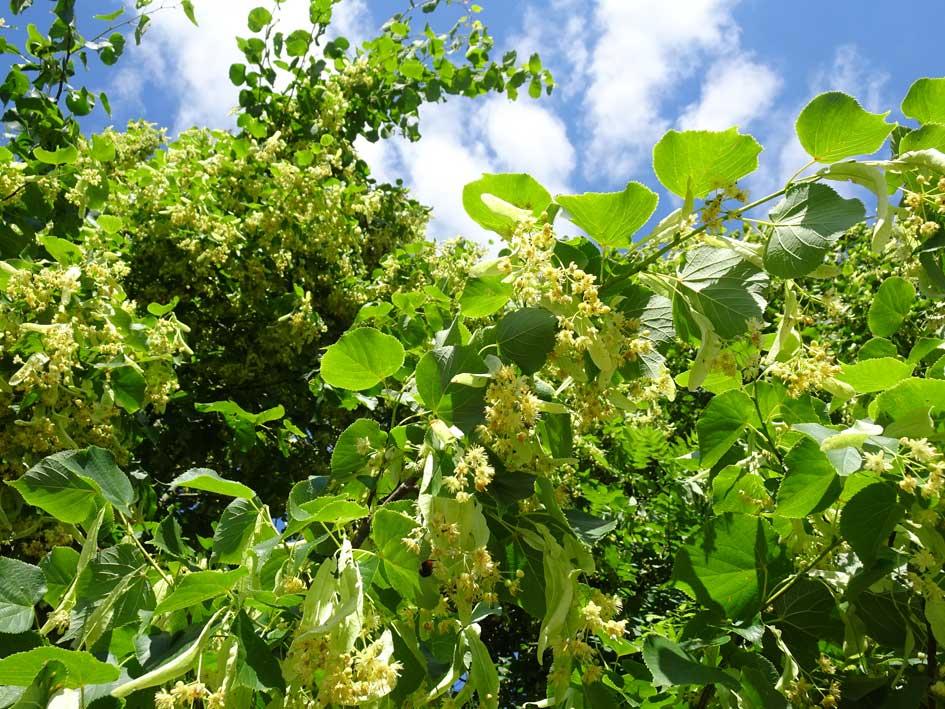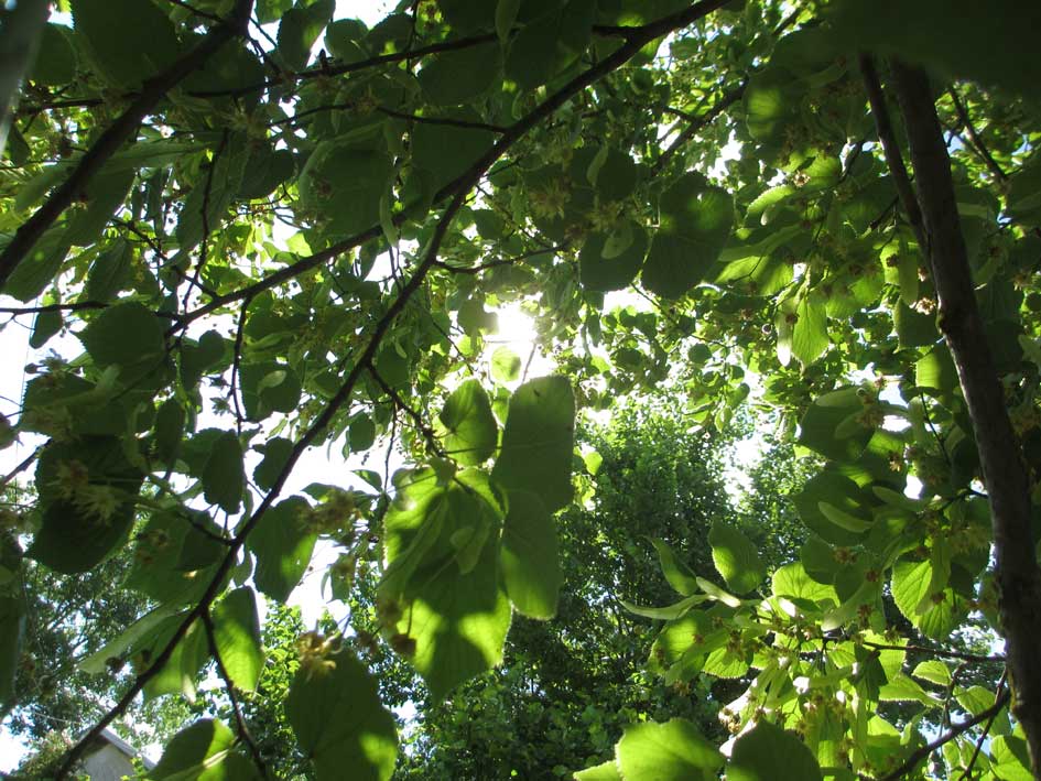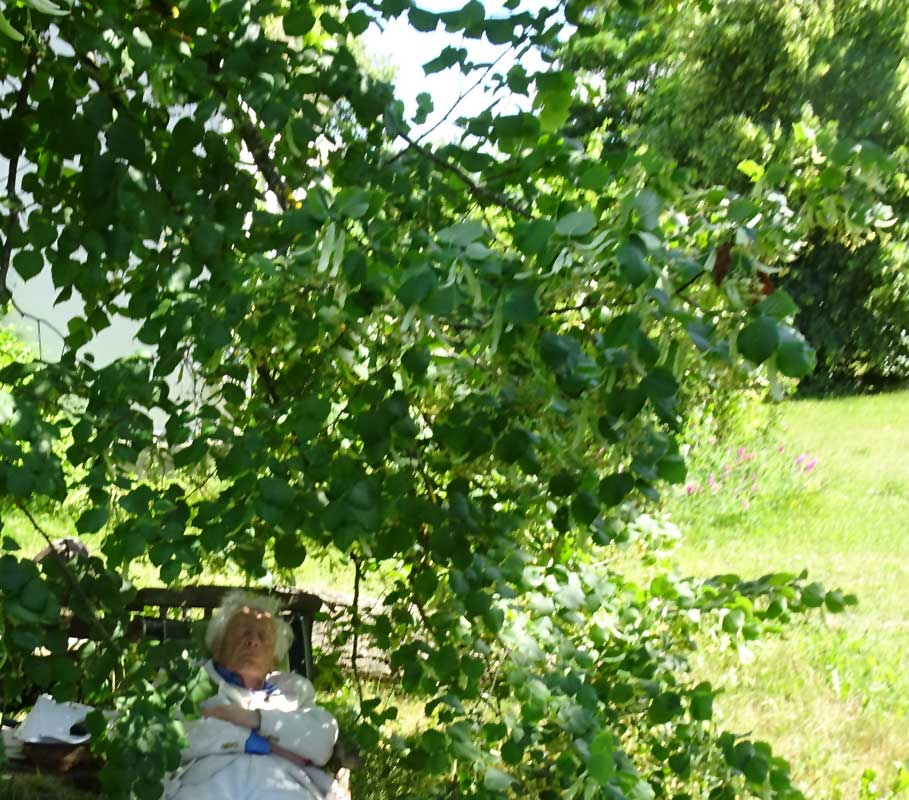 Es ist die Linde die vor kurzem zusammenbrach, unter deren Blüten wir nun ruhen. Im Kranz der unten erhaltenen Äste