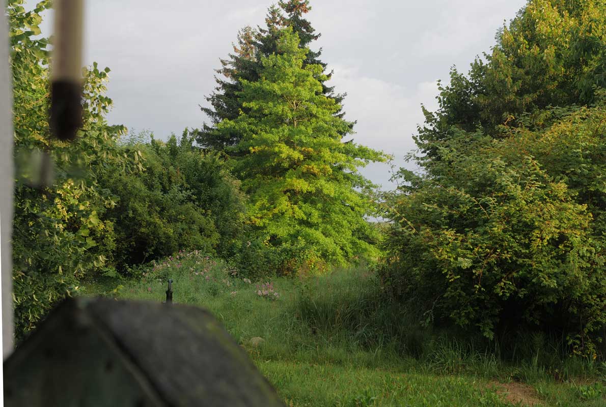 und hell steht die Eiche vor den dunklen Tannen über dem Schleier der Vicken.