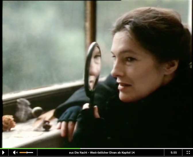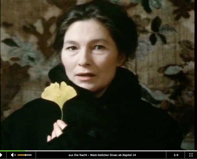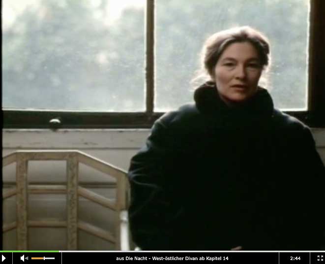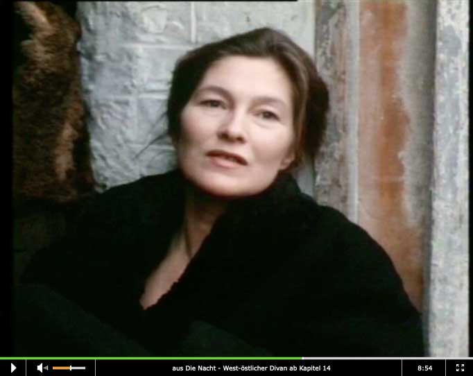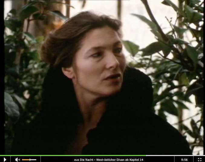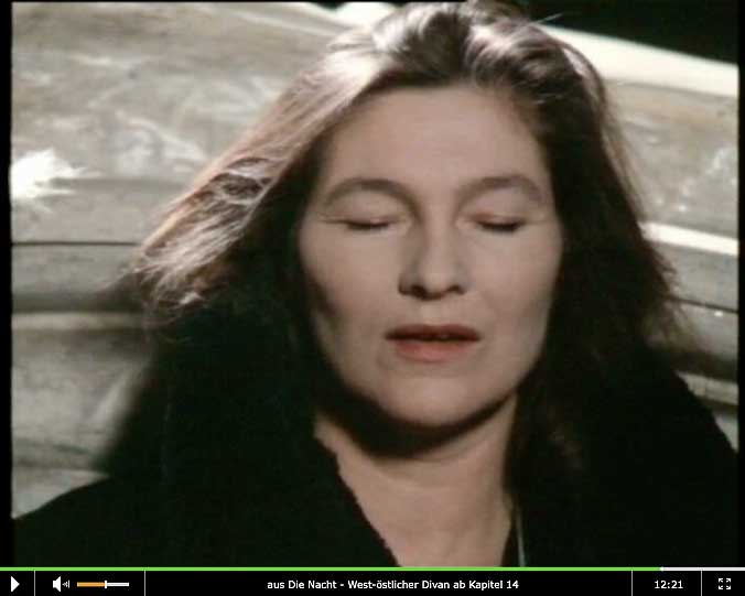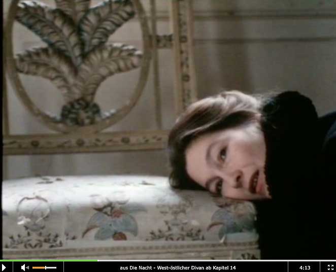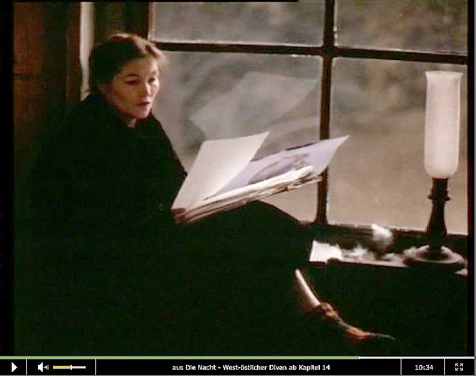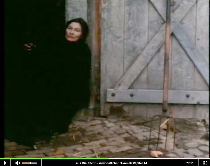Und dann, etwas fehlte, in der am Sonnabend vorgeführten Kopie -zu ermitteln warum- einige Kapitel aus dem Goetheschen West-östl Divan in Farbe und aussserhalb des Studios sonst.