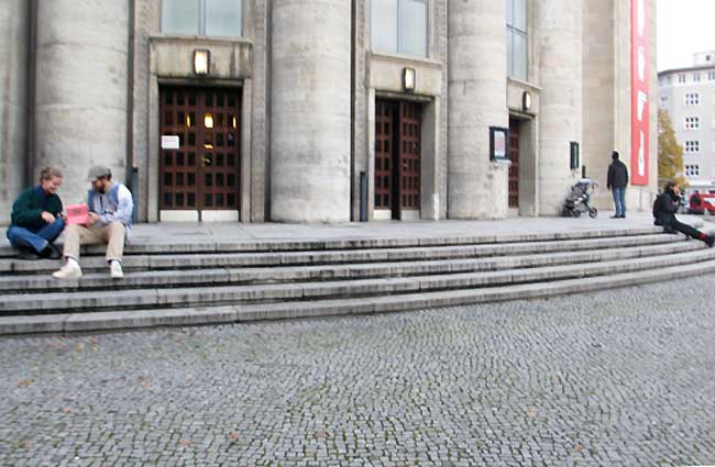 an den Marmorpfeilern der Reichskanzlei vorbei