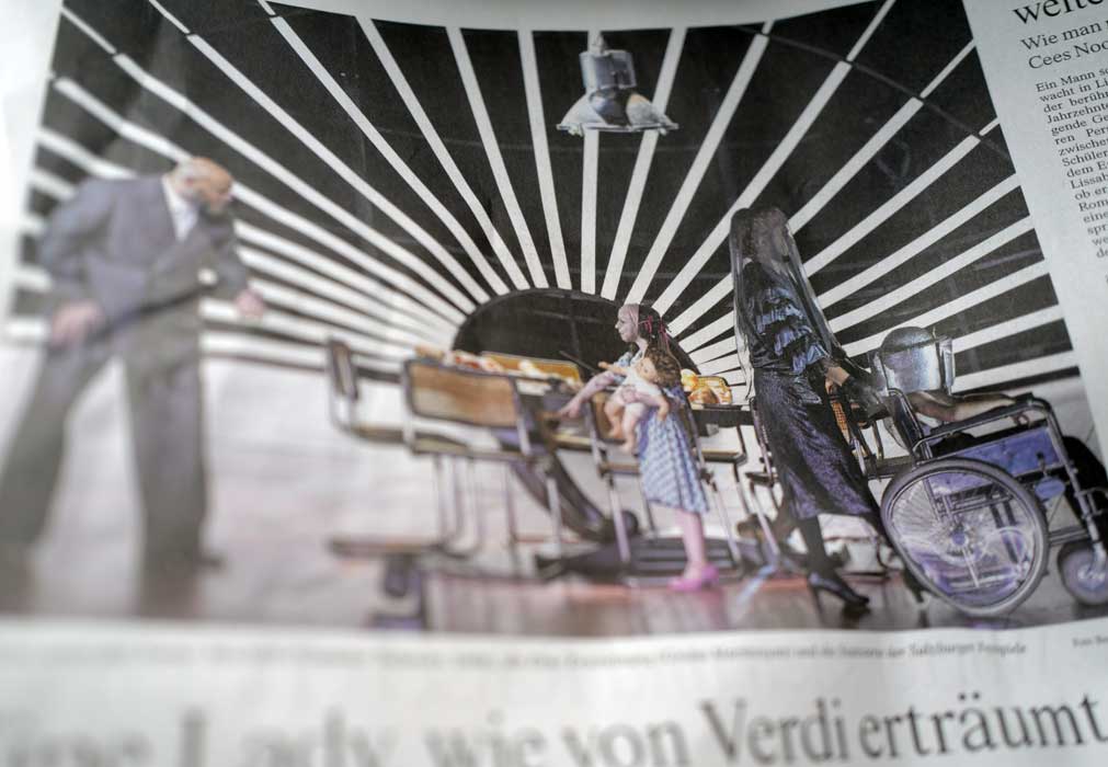Requisiten für einen Regie-Künstler mit Schändungsabsichten gegen den Komponisten mit kollaborierender Kritik.