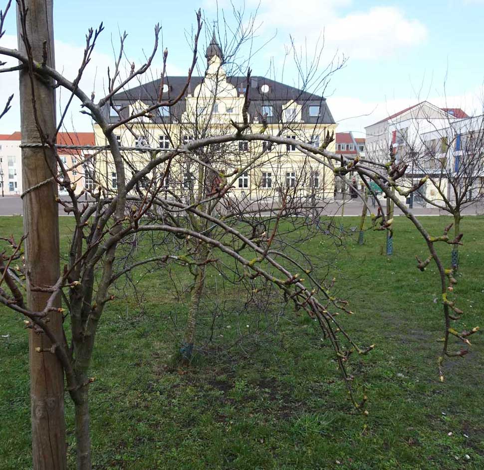 Diese von den Bürgern gespendete Baumreihe von 24 Exemplaren. Viel benutzt als Verbindung des westlichen Stadtteils mit der Mitte und dem Rathhaus, wie man an der Spuren des Weges im Gras erkennt und historisch Teil des alten Bebaungsplans, aks Keller-Gang dem man folgte: in der Keller des Rathauses als gastron. Ort , jezt Loch der Garage). Aber als Motiv auch der Touristen das aktuell seit Bestehen meistfotografierte und agedruckte Objekt des heutigen Demmin, auch als Zeichen des Trotzdem .