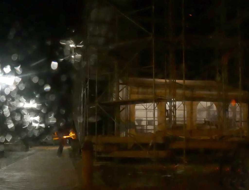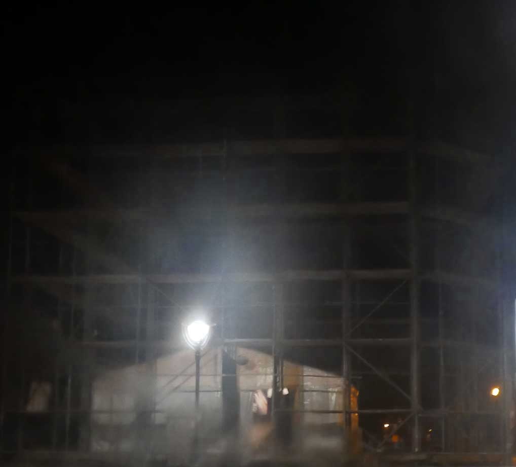Und einem Theater zwischen Plattenbau und Turm der Kirche unter freiem Himmel.