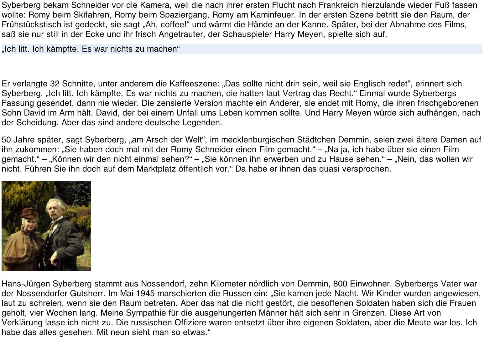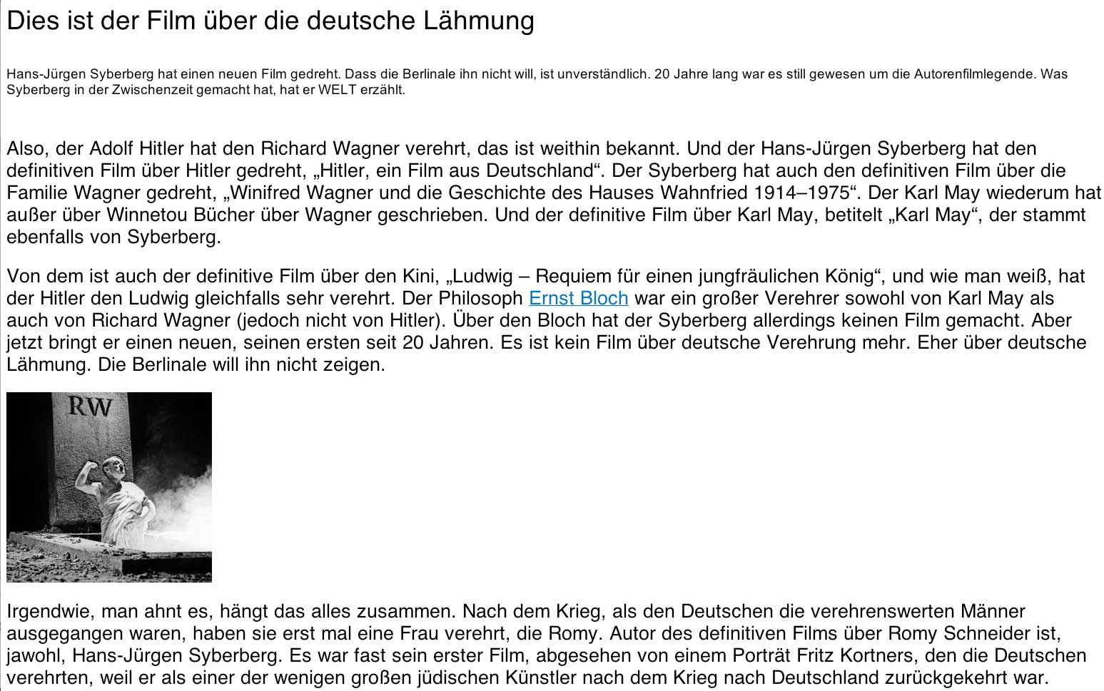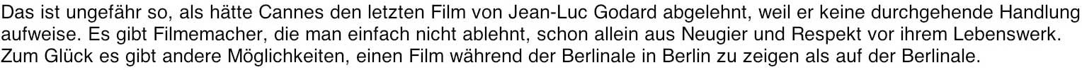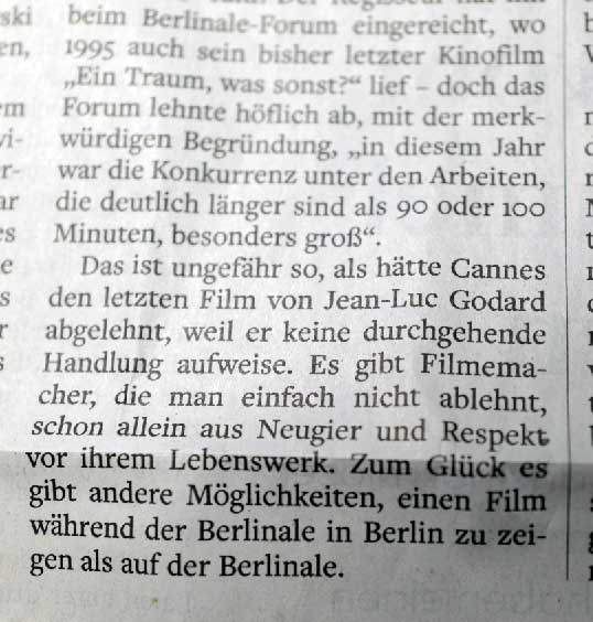"Wir haben Ihren Film mit großem Interesse gesichtet und ausführlich diskutiert, nicht zuletzt auch als wichtigen Beitrag zur Auseinandersetzung Deutschlands mit sich selbst. Doch haben wir uns am Ende nicht dafür entschieden, ihn in unser Programm aufzunehmen."