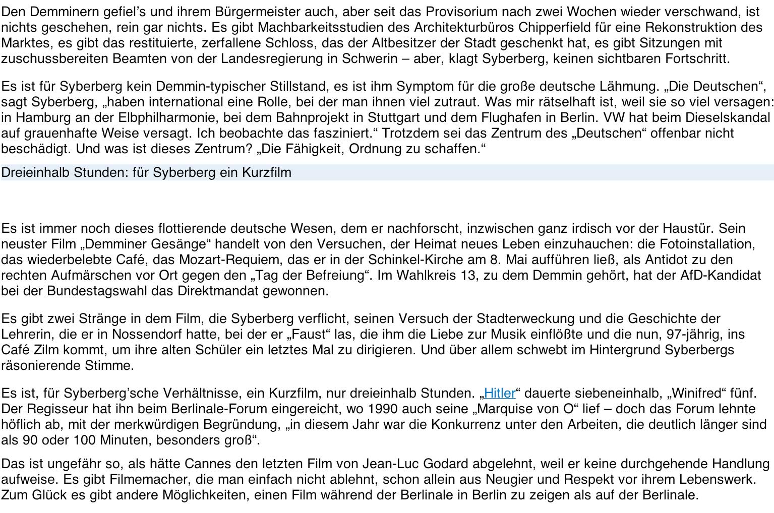 Demmin... ab 2015 daraus der aktuelle Film "Demminer Gesänge"-