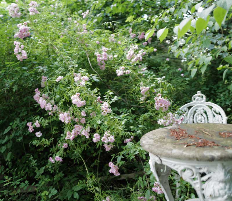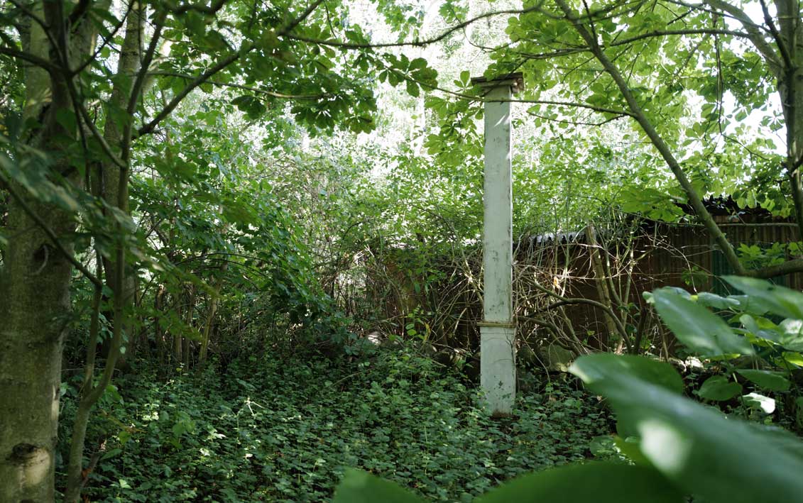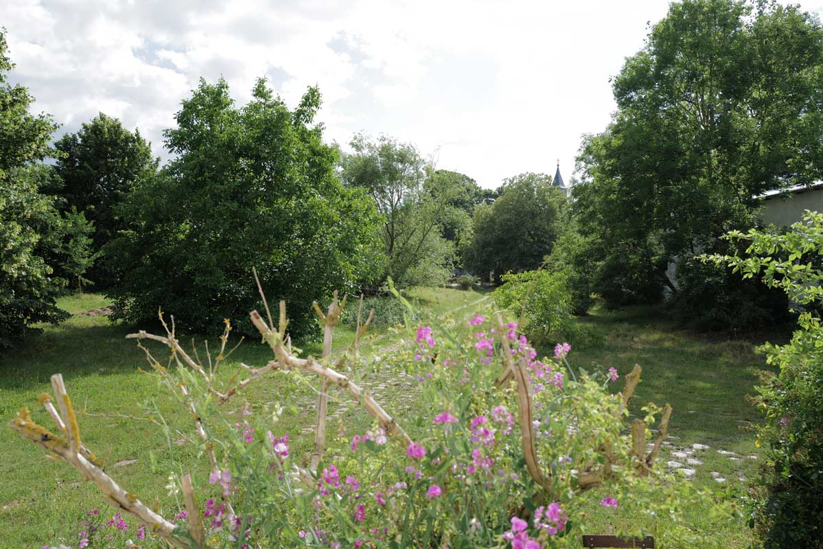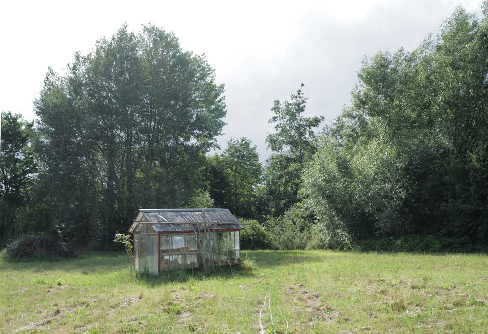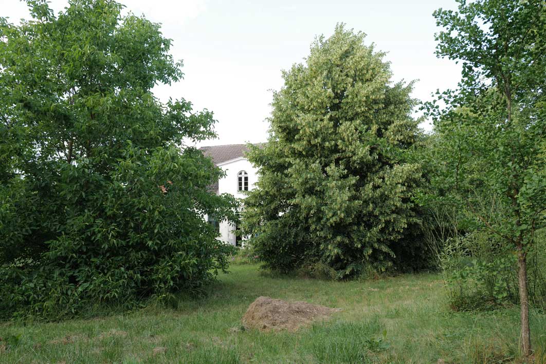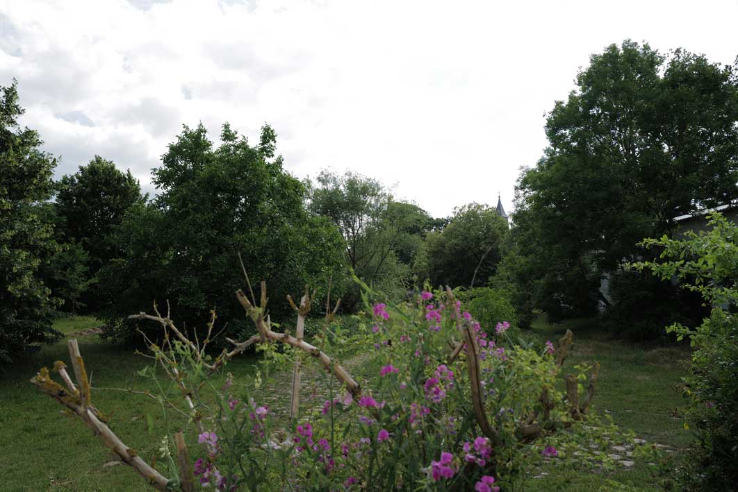 aus dem Fenstergeschaut. Alles selbst gepflanzt aus der Not befreit, wie hingeworfen, ab gestorben, neu gewachsen, all täglich. Was mal ein Hof war.