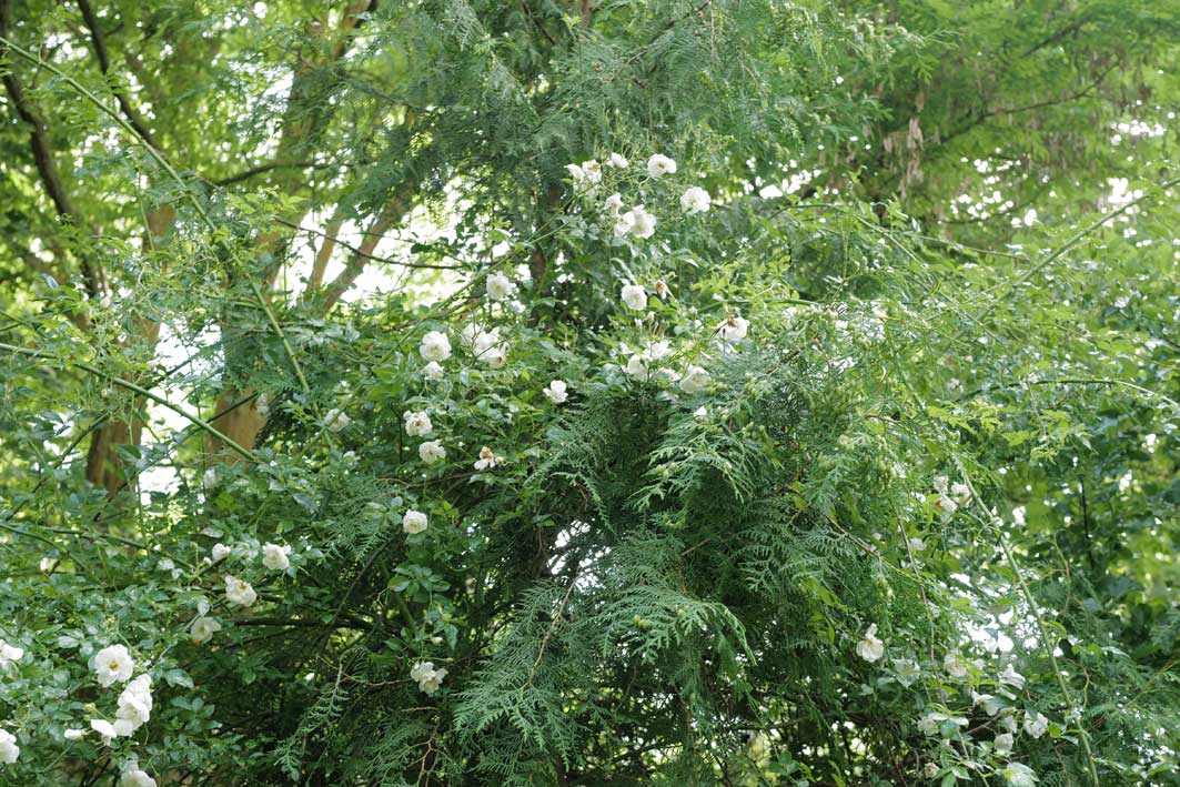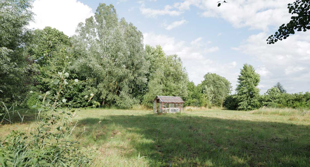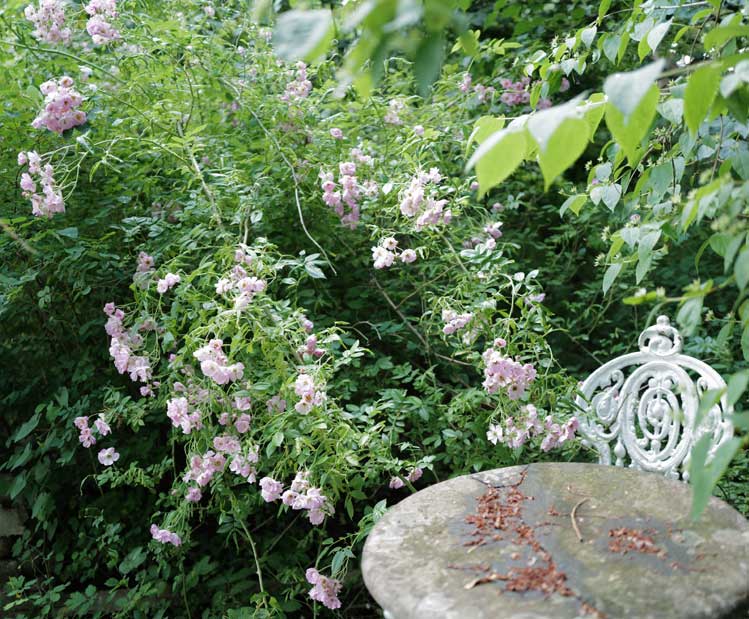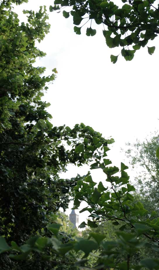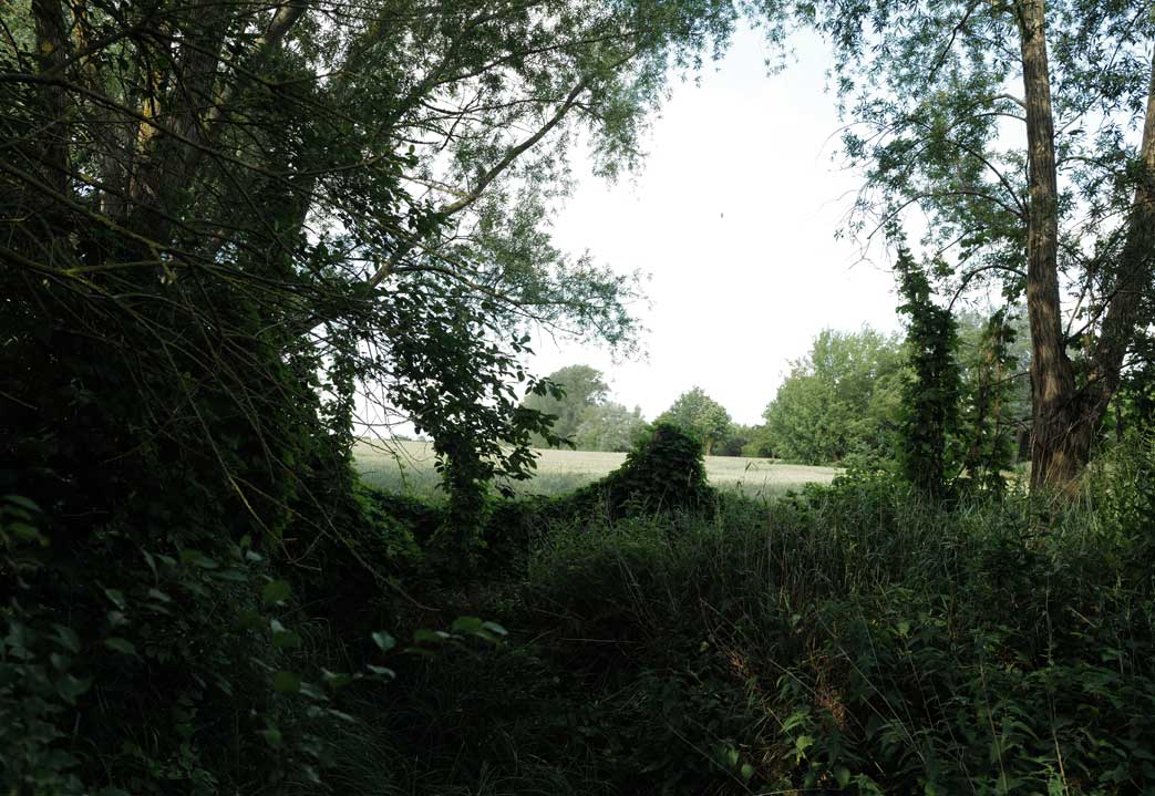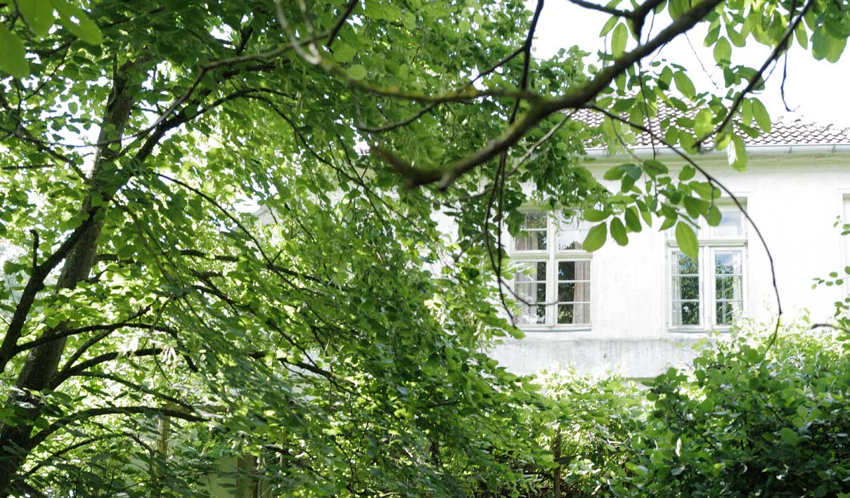 aus dem Fenstergeschaut. Alles selbst gepflanzt aus der Not befreit, wie hingeworfen, ab gestorben, neu gewachsen, all täglich. Was mal ein Hof war.