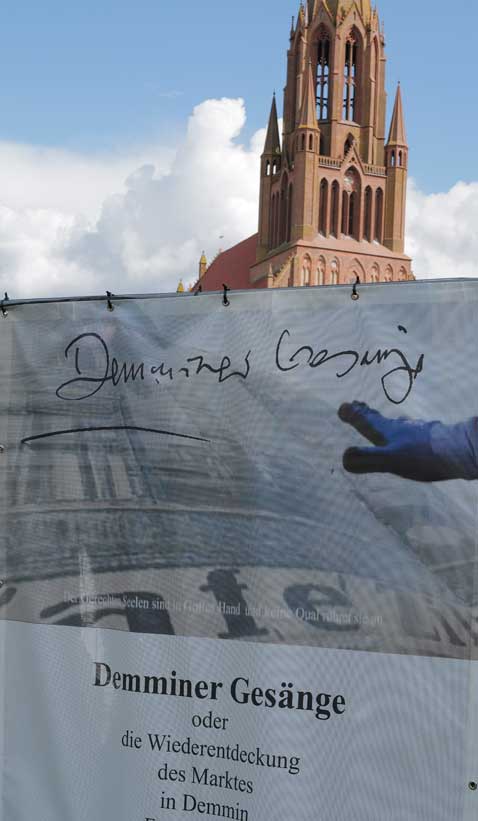 Der sommerliche Tunnel-Weg des Demminers Markts läd ein zum KellerGesang.
