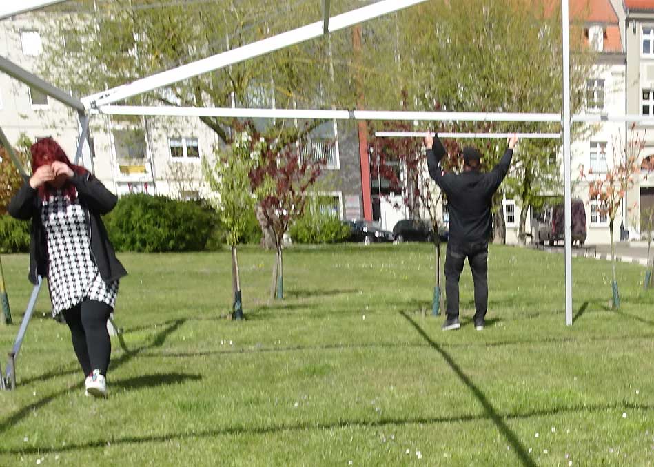 Ein Gerüst braucht keinen Pfähle in den Boden?