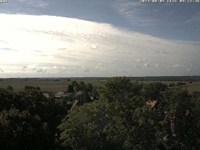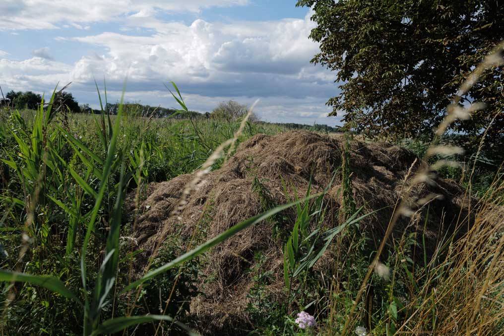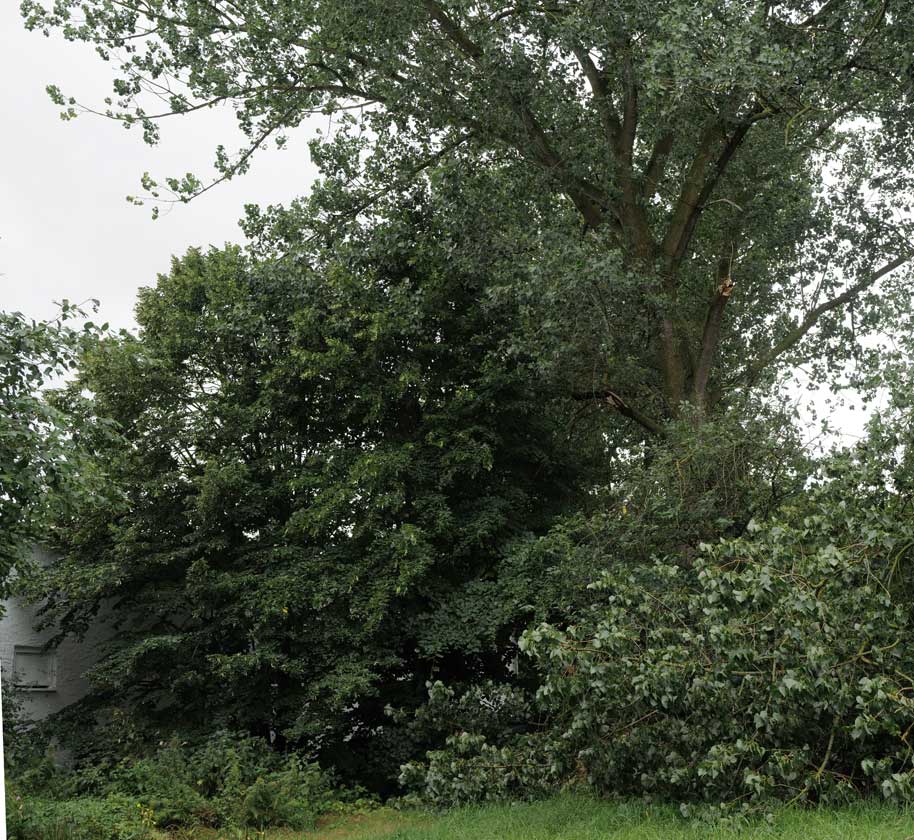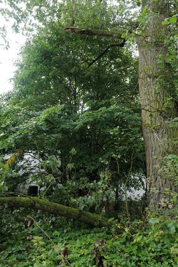 Nur die Pappeln am Haus im Dorf machen sorgen. Auch die DDR Korniferen gehören da eigentlich nicht hin.