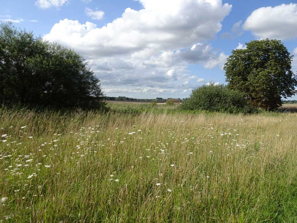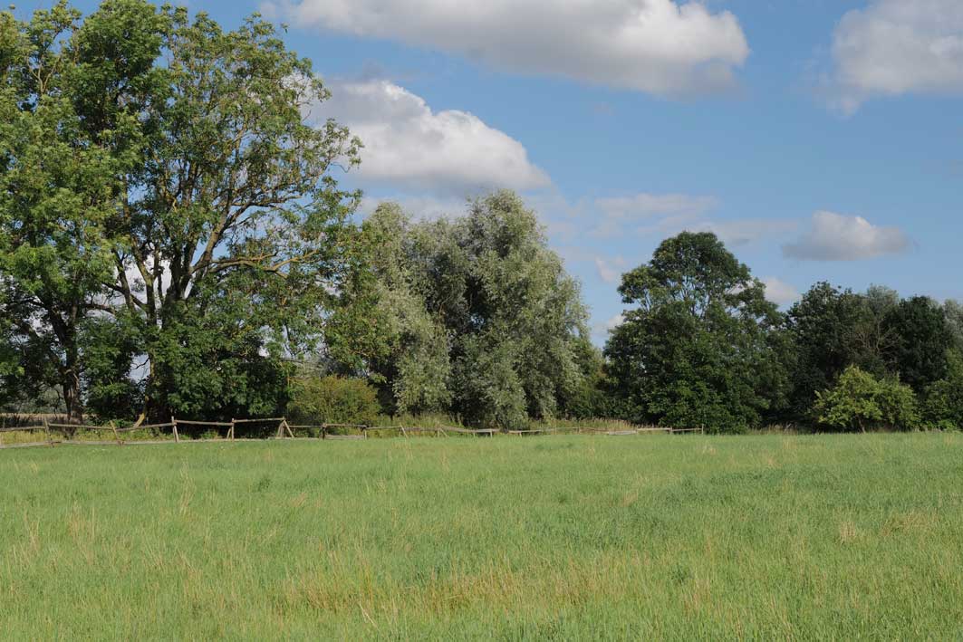 Am Rand der Koppel der Graben wo die Weiden und Esch stehen.