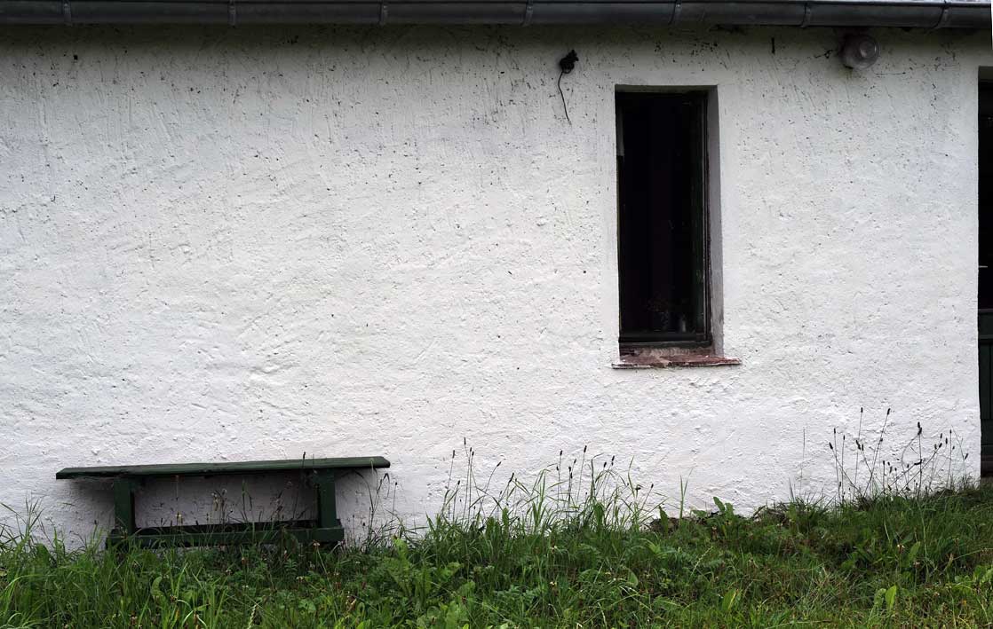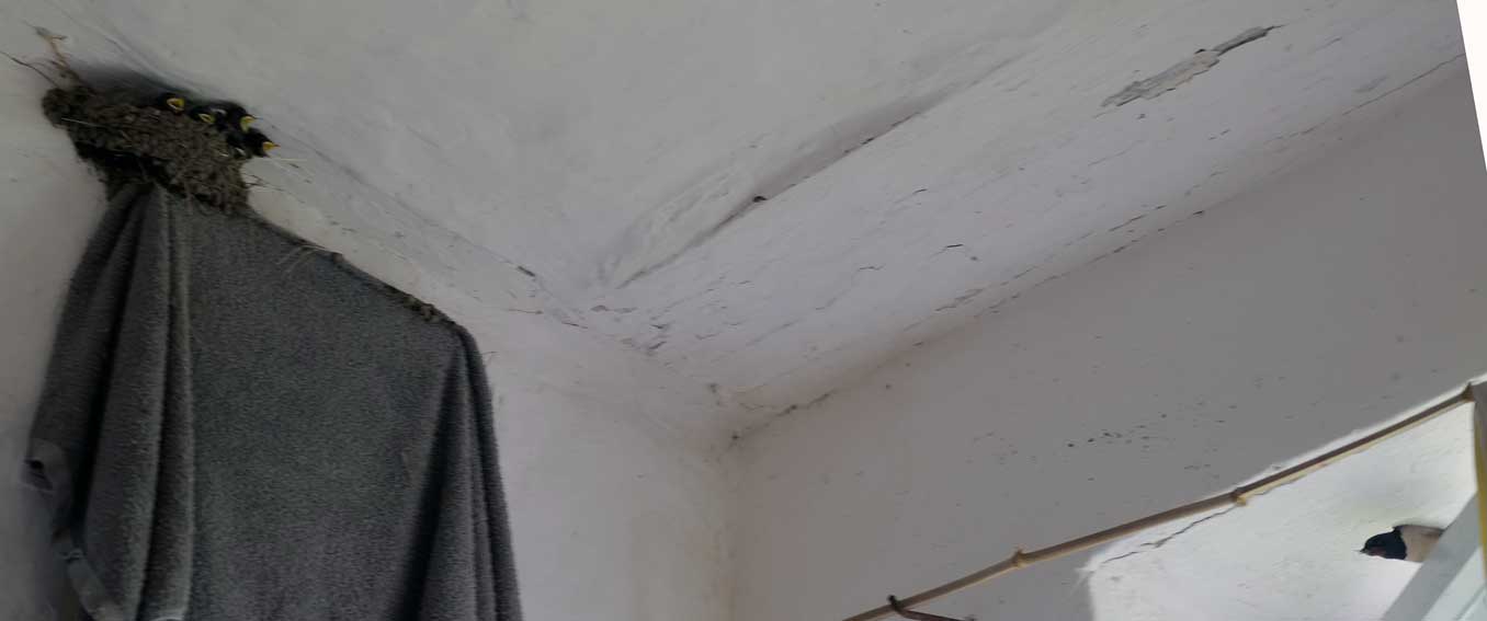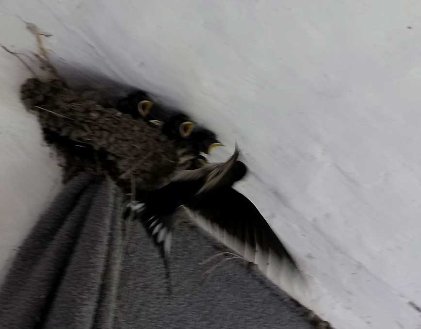 Da wo sie wohnen. Der schmale Spalt in der eingekeilten Öffnung des Fensters genügt zum Eintritt.