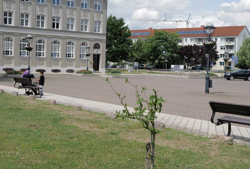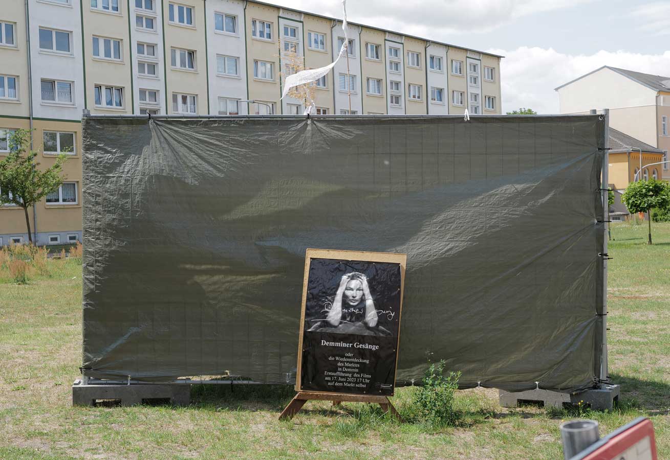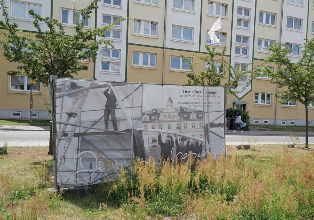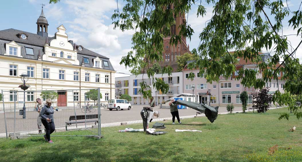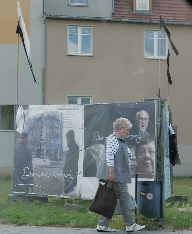 Was in mehreren Tagen und mit Helfern aus Berlin und München und Carlstal an der Trebel und auch aus Demmn für Gotteslohn entstand hier, in einer Stunde entfernt auch ohne Krieg und Brand, aber festgehalten, nach haltend zu beleben diese Stadt als ein Modell sonder Gleichen, Bild-haft geworden im Raum des Platzes selbst zu begehen und nun wieder und wieder hier. Zu sehen was hier ist.