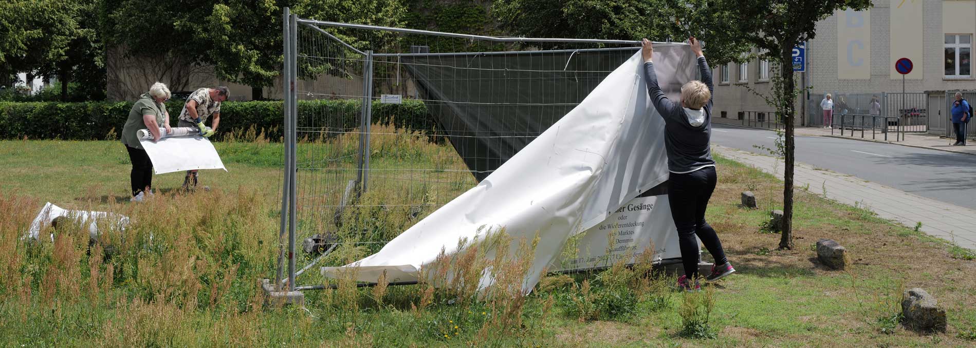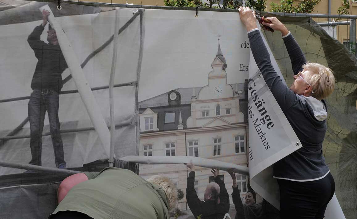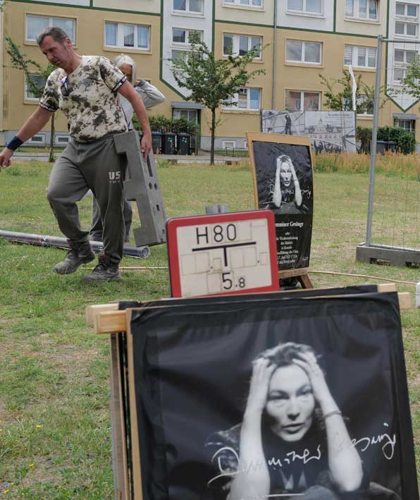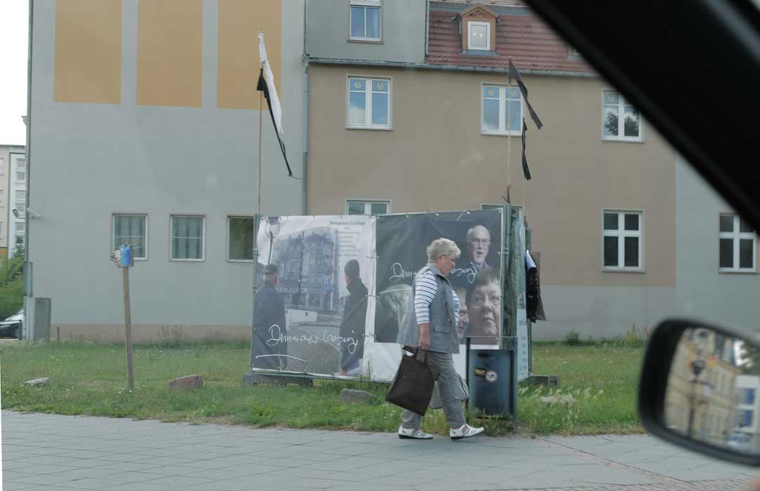 Was in mehreren Tagen und mit Helfern aus Berlin und München und Carlstal an der Trebel und auch aus Demmn für Gotteslohn entstand hier, in einer Stunde entfernt auch ohne Krieg und Brand, aber festgehalten, nach haltend zu beleben diese Stadt als ein Modell sonder Gleichen, Bild-haft geworden im Raum des Platzes selbst zu begehen und nun wieder und wieder hier. Zu sehen was hier ist.