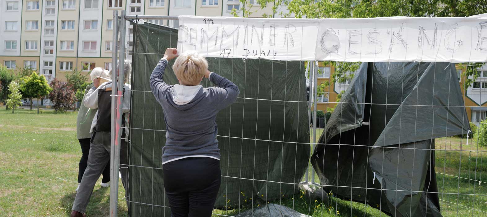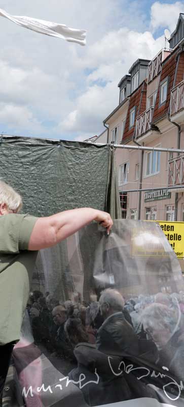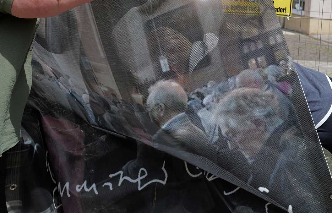 Wo hier eine Kirche stand, ein Kino war - bedenkt den Auftrag, was das heisst. Zum ersten Mal nach Enteignungen selbst zu bestimmen alles zusammen.