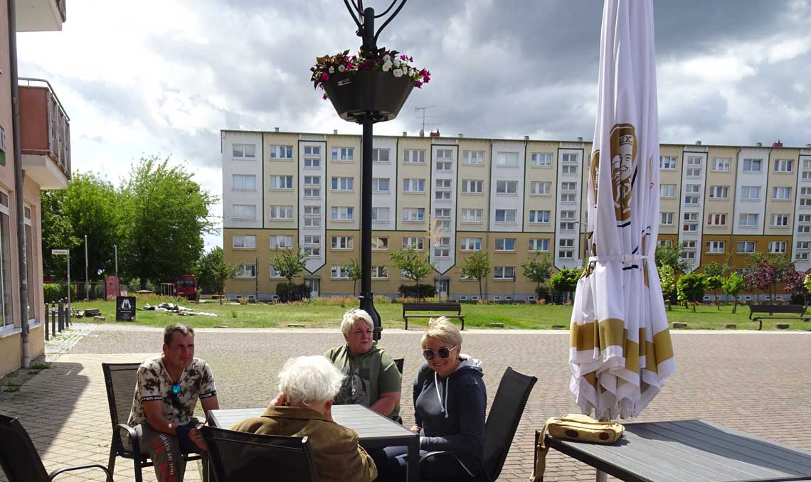 Und wenn sonst nichts wäre, aber seitdem der Film hier gezeigt wurde und entstand vor 8 Jahren seine Kulissen in originaler Besetzung der Bewohner von heute, ist das einzige Lokal am Markt heute wieder belebt am Platz mit Tischen und Schirmen und Menschen.