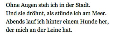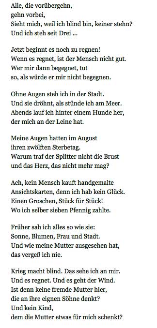 Bis in die Nacht auf der Veranda las Hänschen ihr vor, auch Erich Kästner Den Binden auf der Strasse, nun auf dem in den Tod, ihre Wahl nicht mehr zu können und zu wollen.