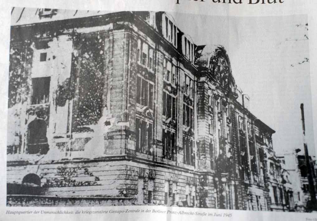 emalt im Park. Abgerissen nach 1945, erhalten die FolterKeller. Weshalb sie die Geschichte vernichtet.