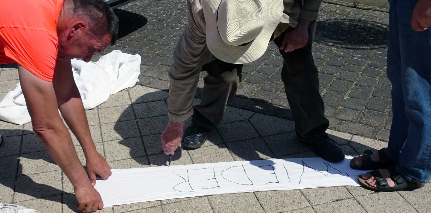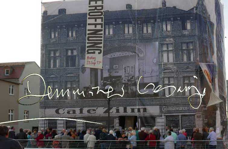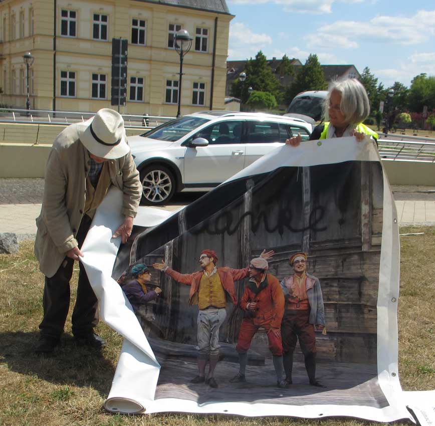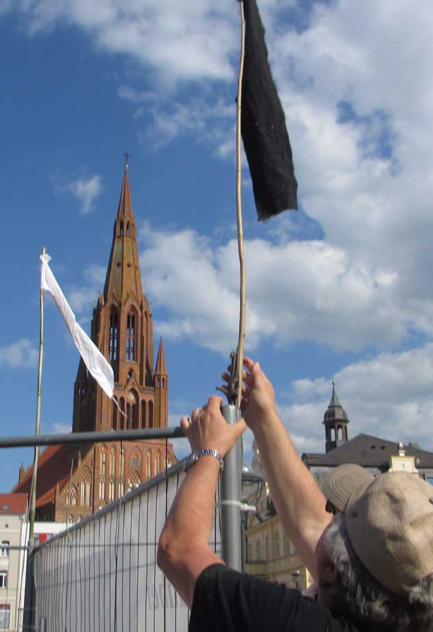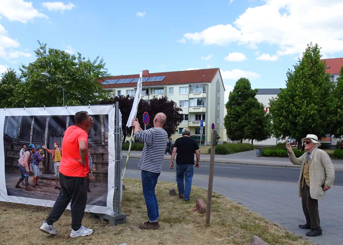 Noch weiss die Stadt nichts von diesem Film. Die zuständige Zeitung schweigt. Alle Öffentlichkeitselemente ducken sich weg. Jetzt haben wir ein Statement am Ort gesetzt am Markt von Demmin selbst, und die Leute die vorbei kommen, fragen und reden. Andere hupen im Vorbeifahren als winkendes Ja. Viele sind auch verreist, habe anderes geplant. Aber die Anderen entdecken vielleicht sich selbst - nochmal und dann auf beste Weise. In 10 Tagen.