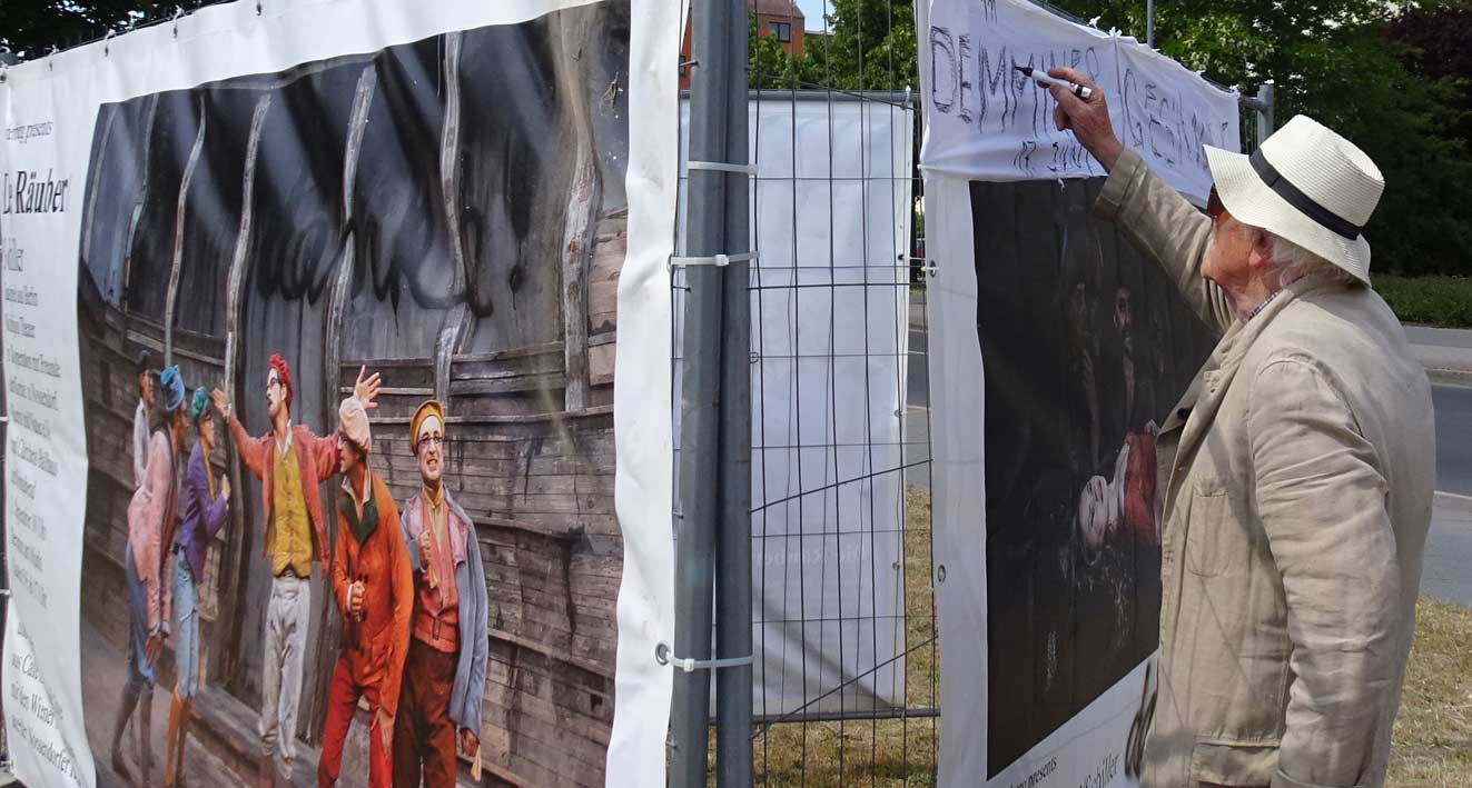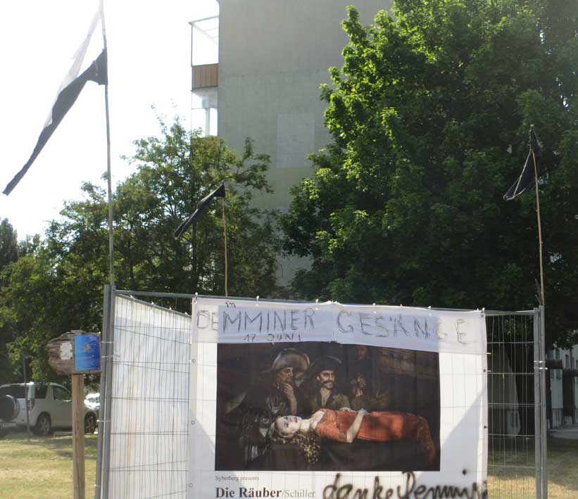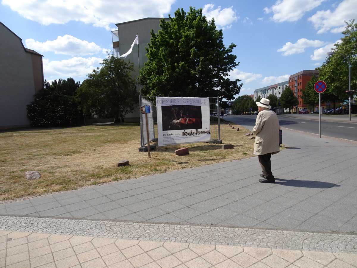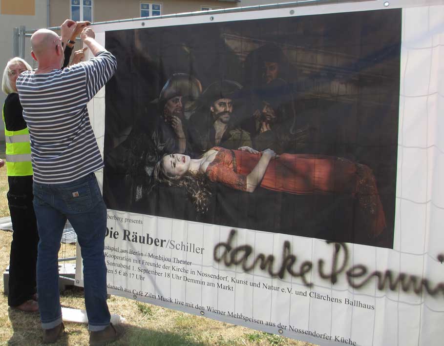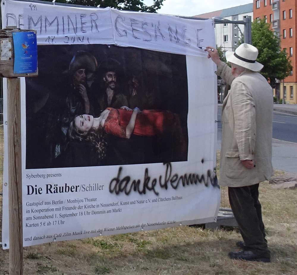 kamen aus Berlin die Räuber auf den Markt von Demmin und die Menschen der Stadt kamen dahin, ausgehungert nach etwas Besonderem. Und sie dankten auf ihre Weise, mit nächtlicher Schrift auf den Plakaten.
