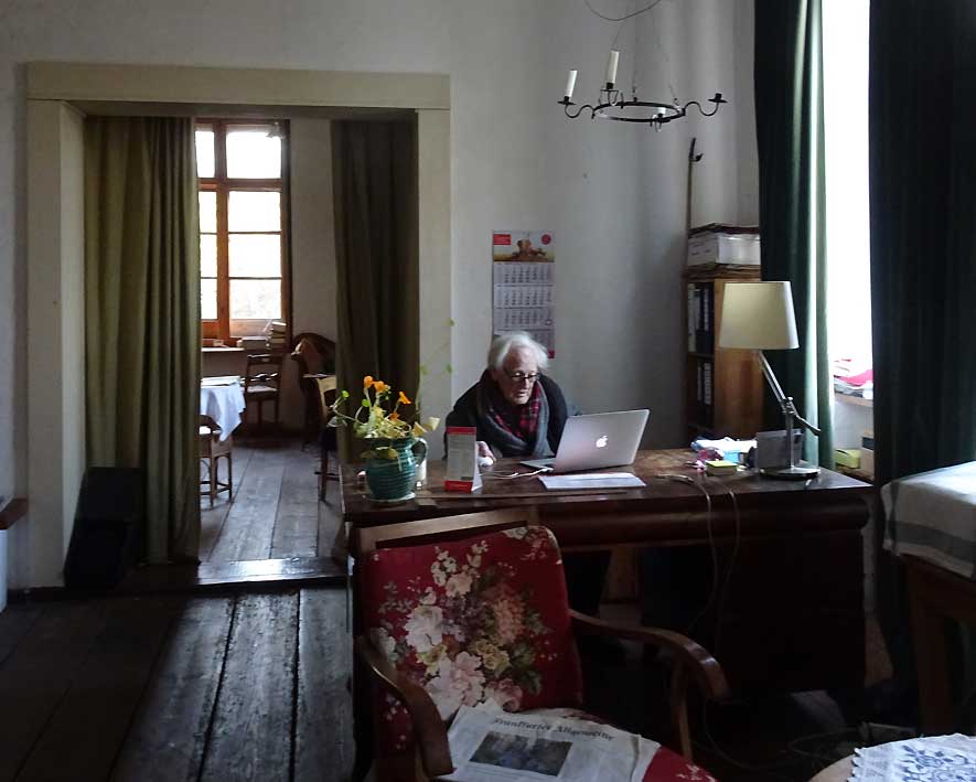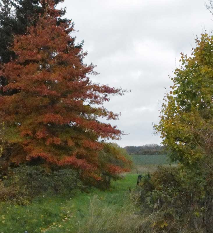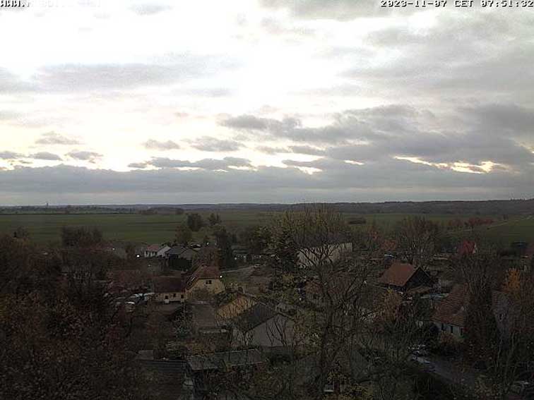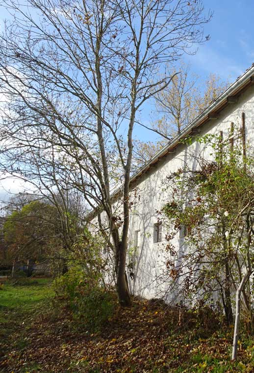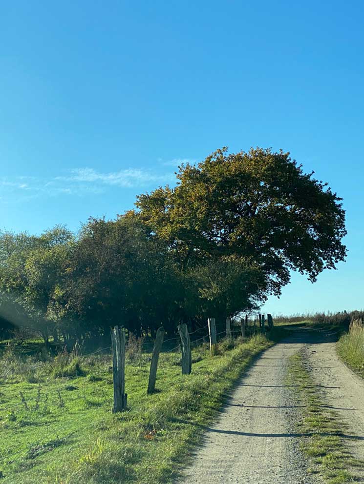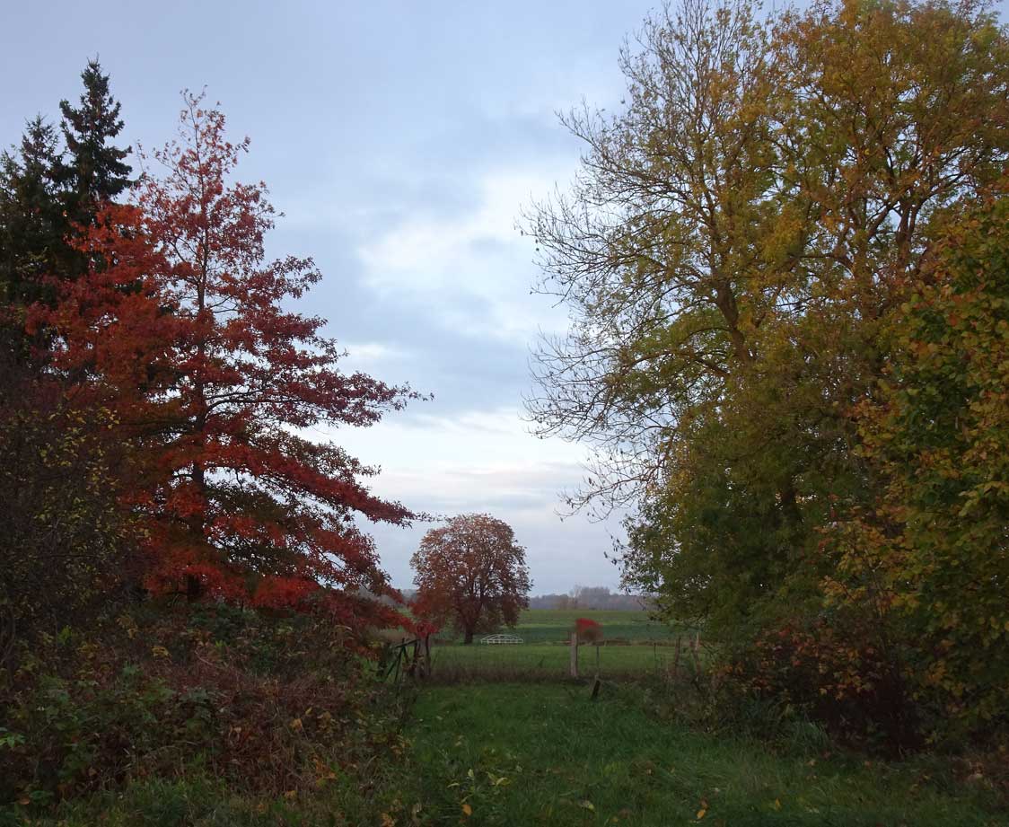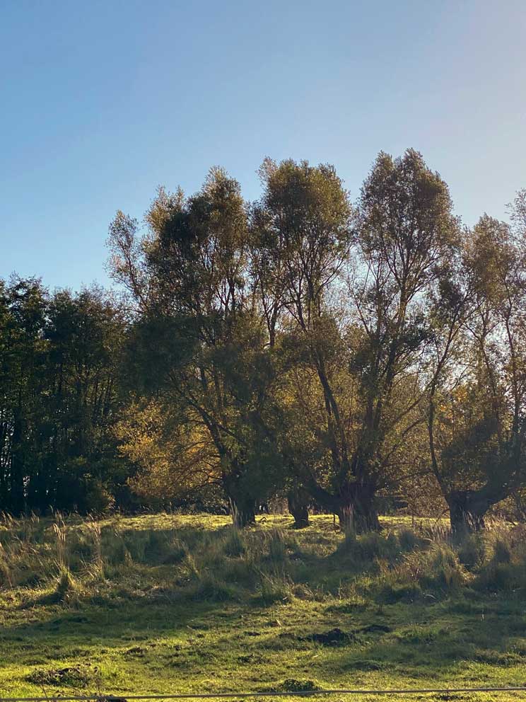 unter der Kastanie, am Graben. Hinten stehen die Wälder hin zur Trebel.
