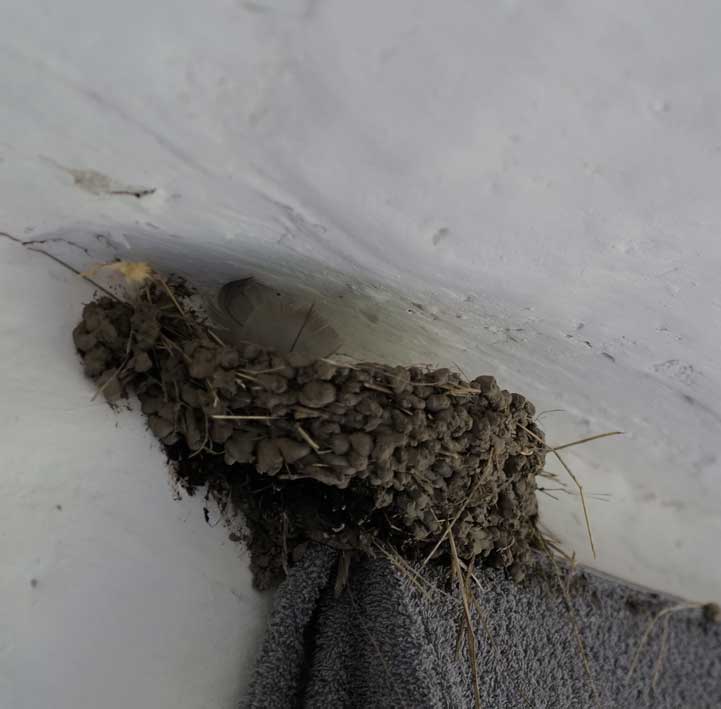Das Nest der Scwalben im Bad ist nunvoll mit 5 Eiern