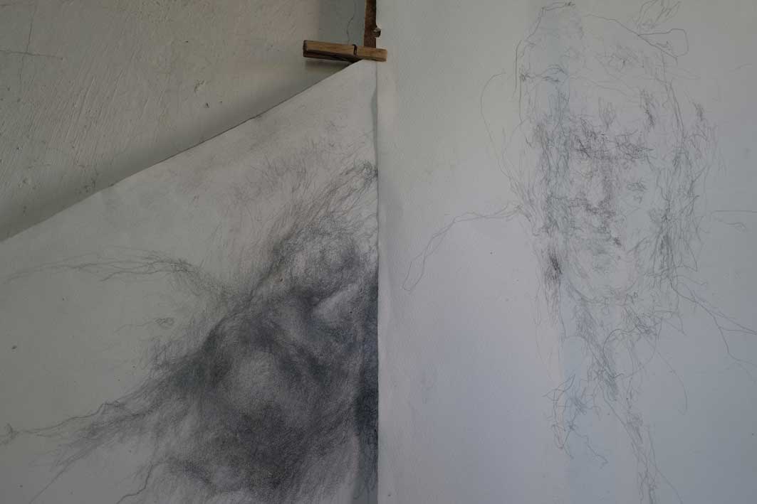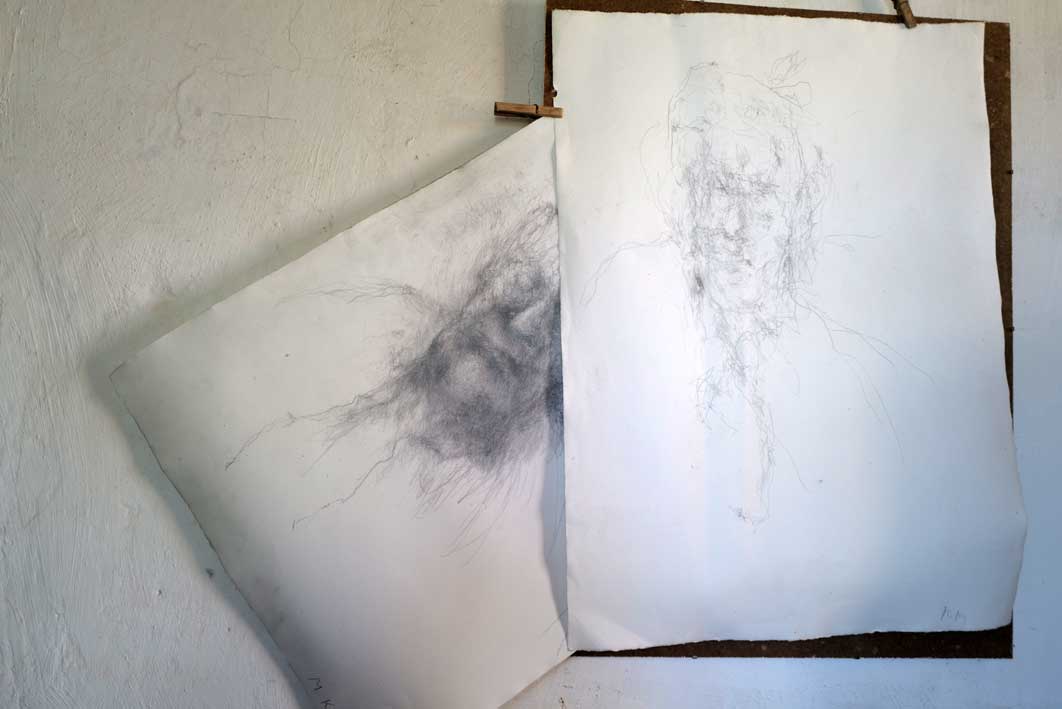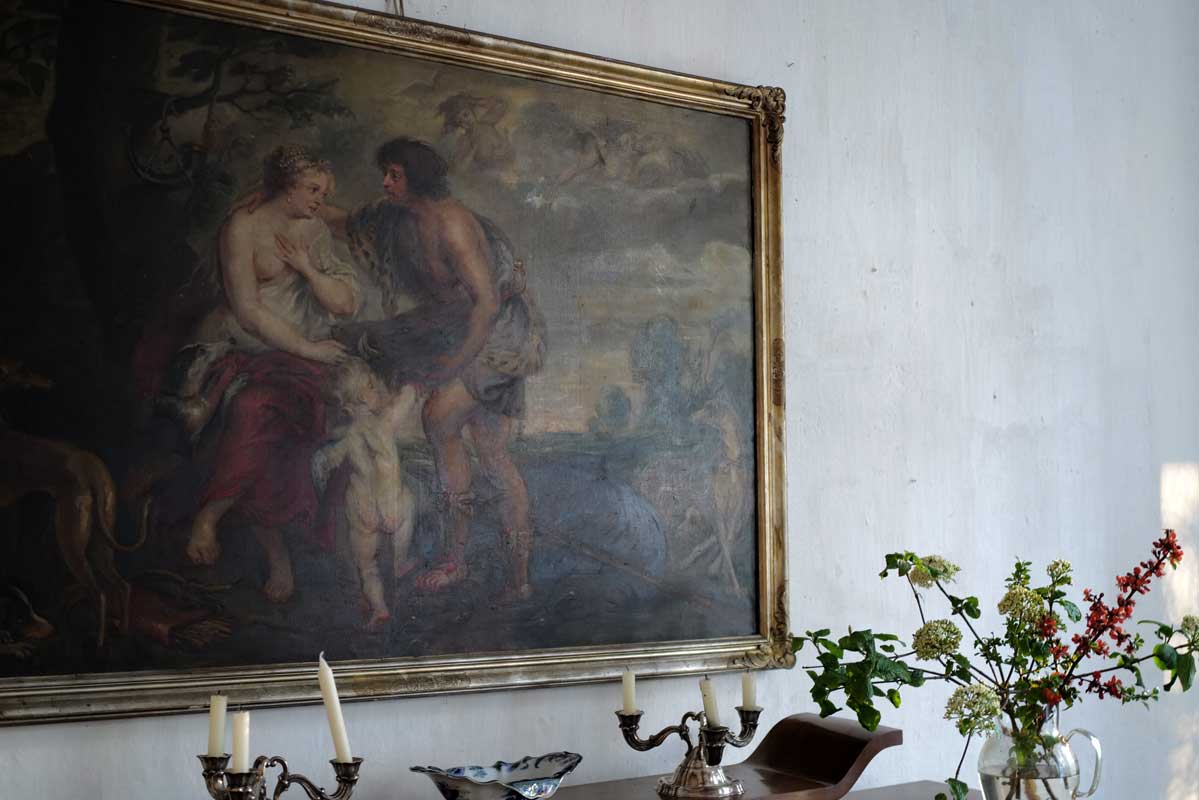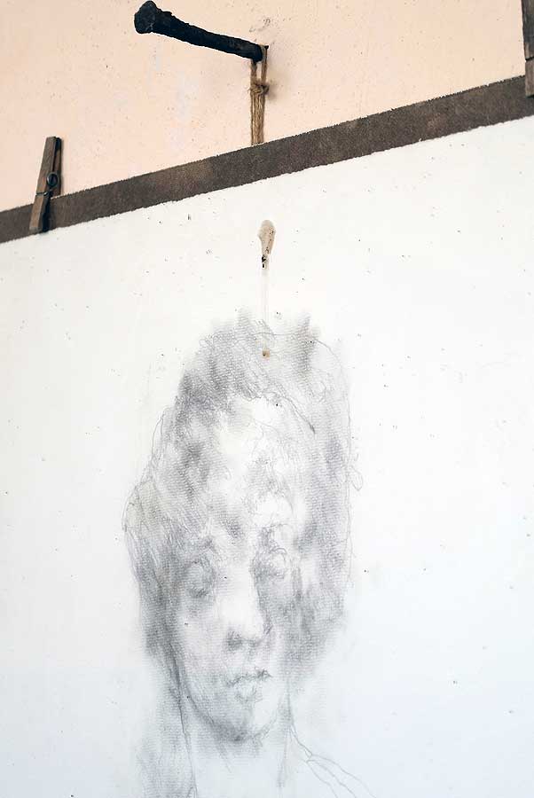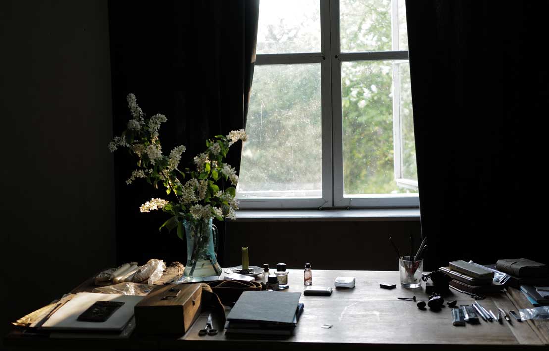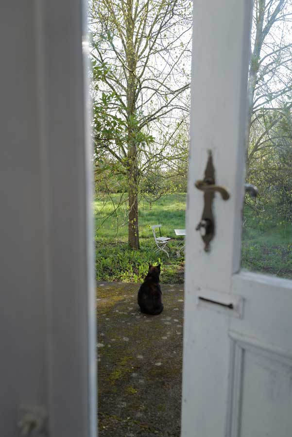 Eben noch vom Sturm und der fallenden Ulme gebrochen und nun aus der Kälte geborgen, geht sie auf, die Kastanie, drausen die Schwestern am Baum noch weit zurück,