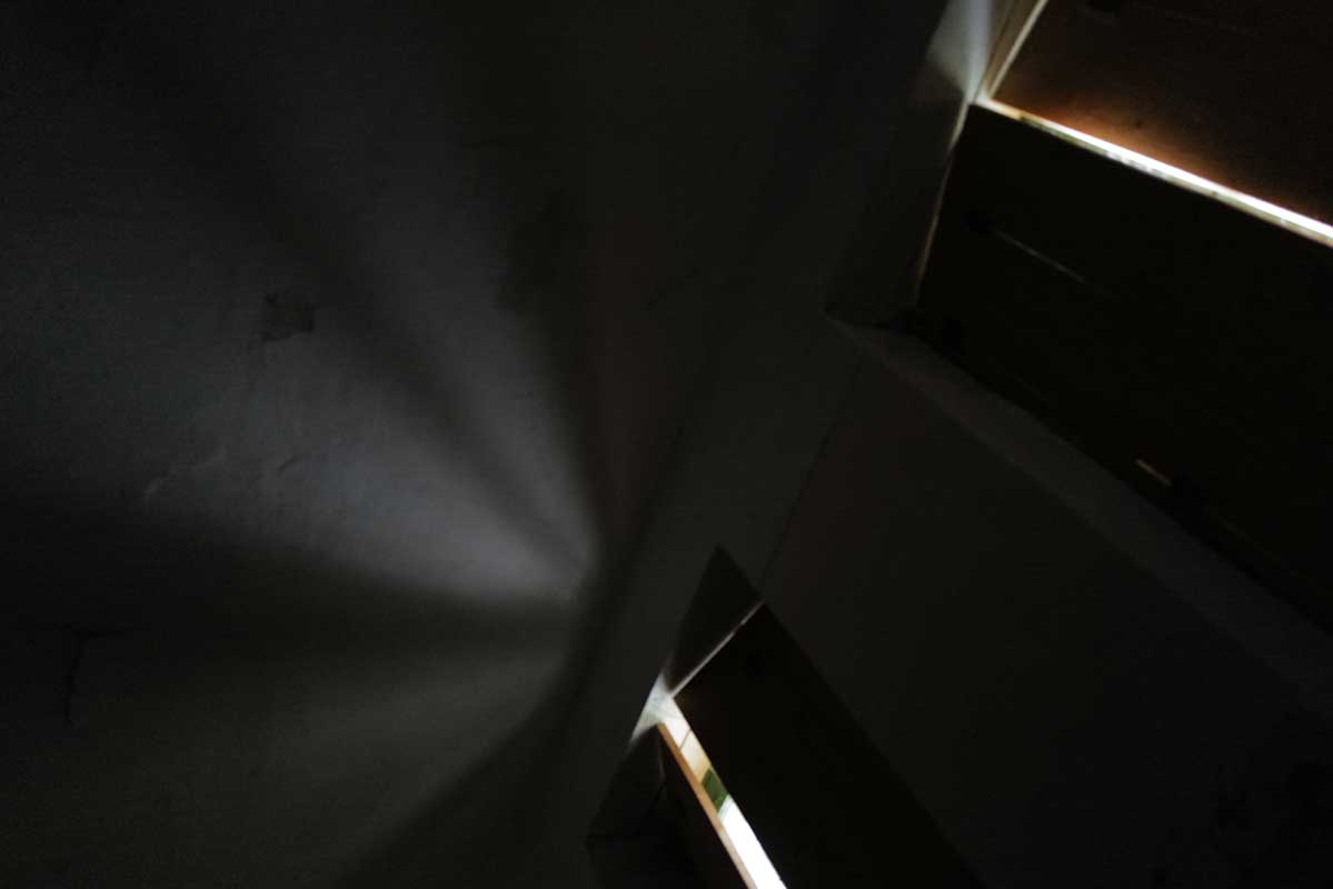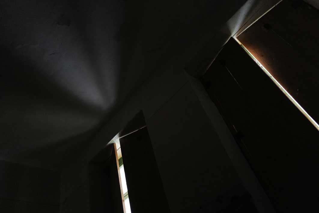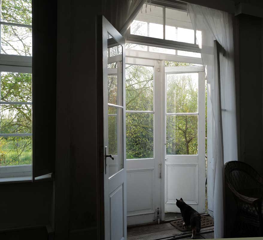 Mit geöffneten Fensterläden sehen wir das Gespinst vom Nest zum Ofen geheimer Stategien unserer Mitbewohner