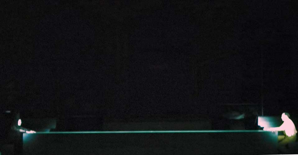 Die Unerbittlichkeit des Todes -das ist der Handel- steht gegen die letzte Chance. Die Gestalterin am Werk. Dass es zum Raum auch wird.