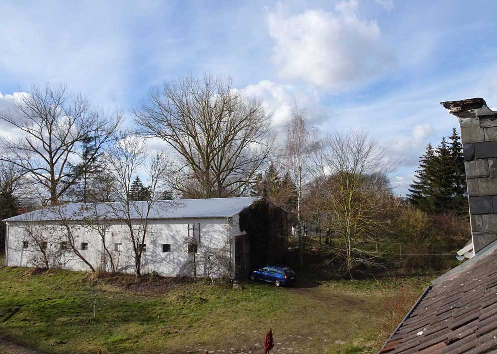 Am Ende des Films nach dem 1. Gang durchs Haus 2000 mit dem Blick aus dem offenen Fenster im Giebel zur Seite. Bis vor Kurzem stand da ein Stall, der Pferdestall, und die Halle rechs, war eine Scheune mit hohem Dach aus Schilf, dahiter das alte Bauernhaus war hell und aus Holz die Balken.